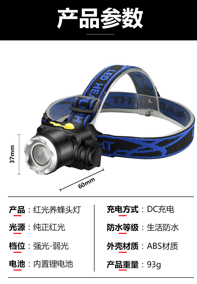 Luz roja apicultura lámpara de cabeza para detectar abejas para tomar miel captura de abejas lámpara de antorcha de cabeza enfoque rojo y blanco doble fuente de luz led