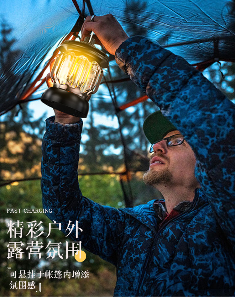 Luz de camping al aire libre transfronteriza carpa atmósfera Luz Retro camping luz LED carga campamento luz colgante