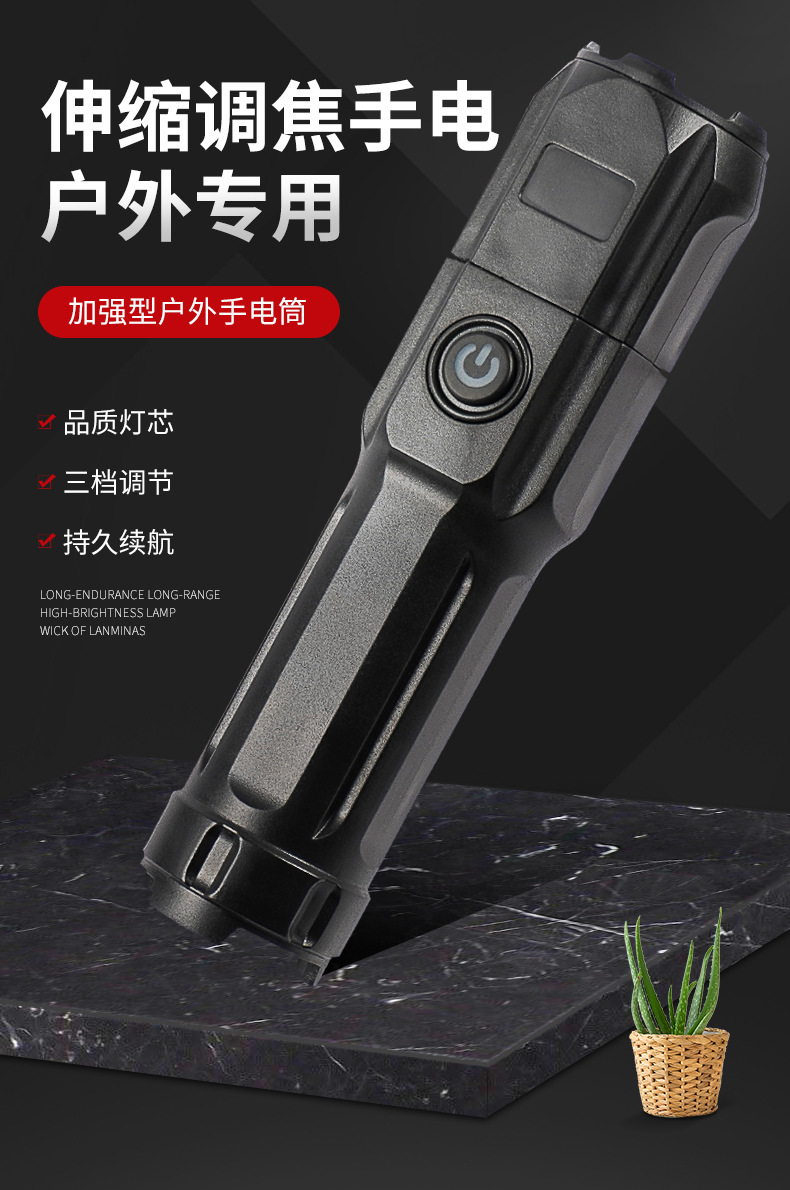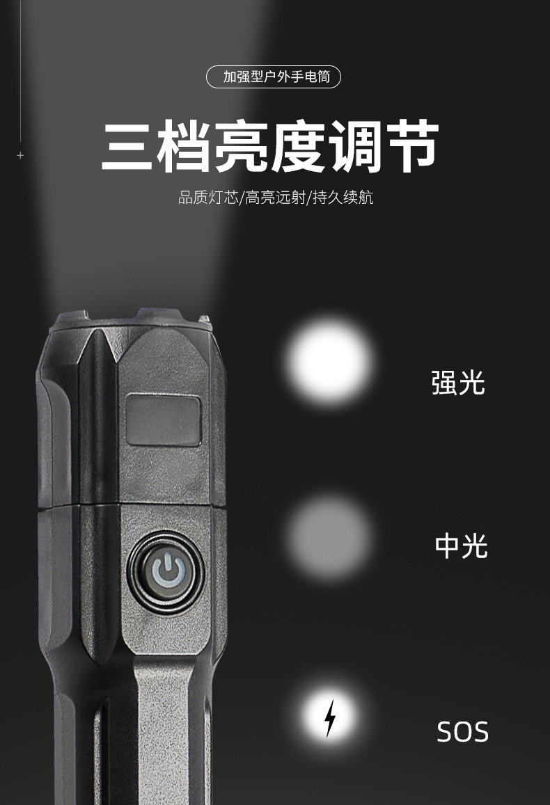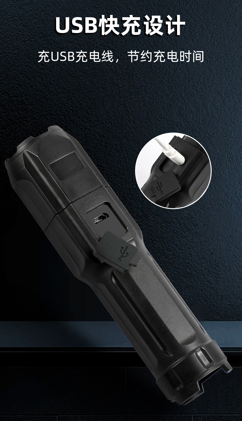 Linterna de luz brillante transfronteriza LED Linterna de luz brillante al aire libre Remote USB Carga telescópica enfoque Linterna de emergencia doméstica al aire libre
