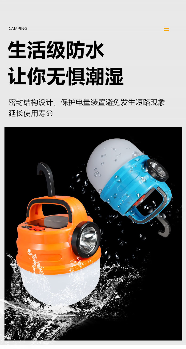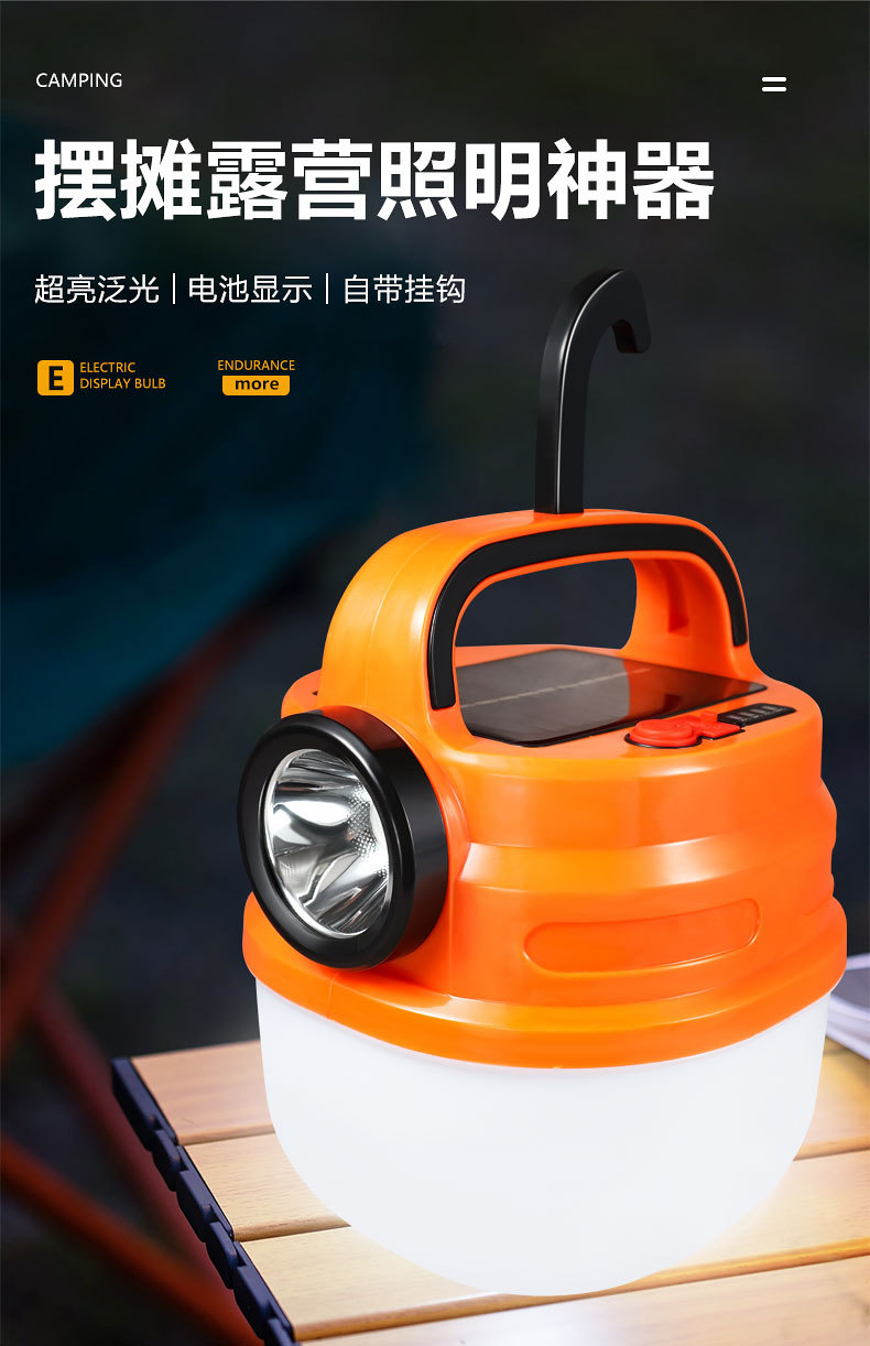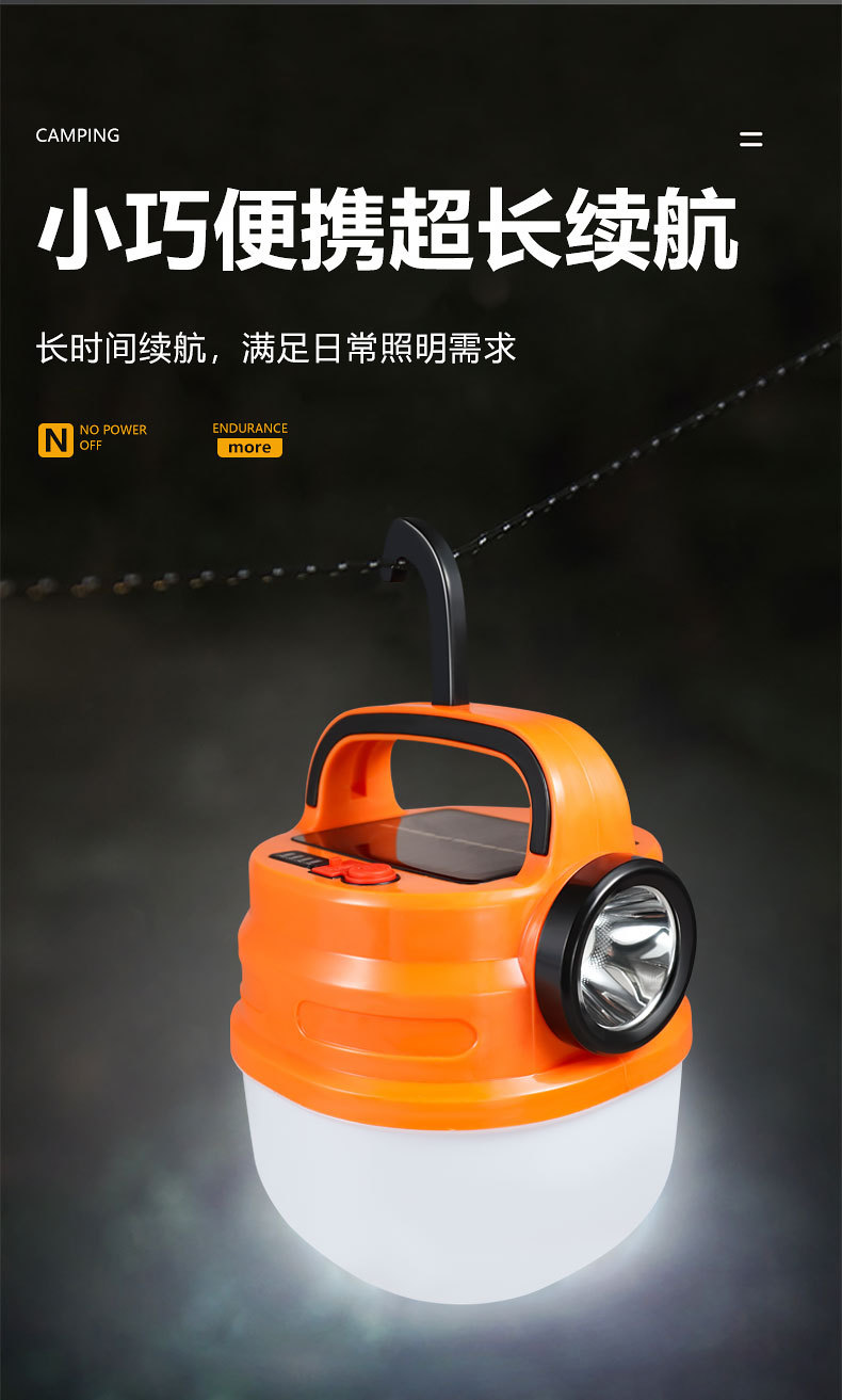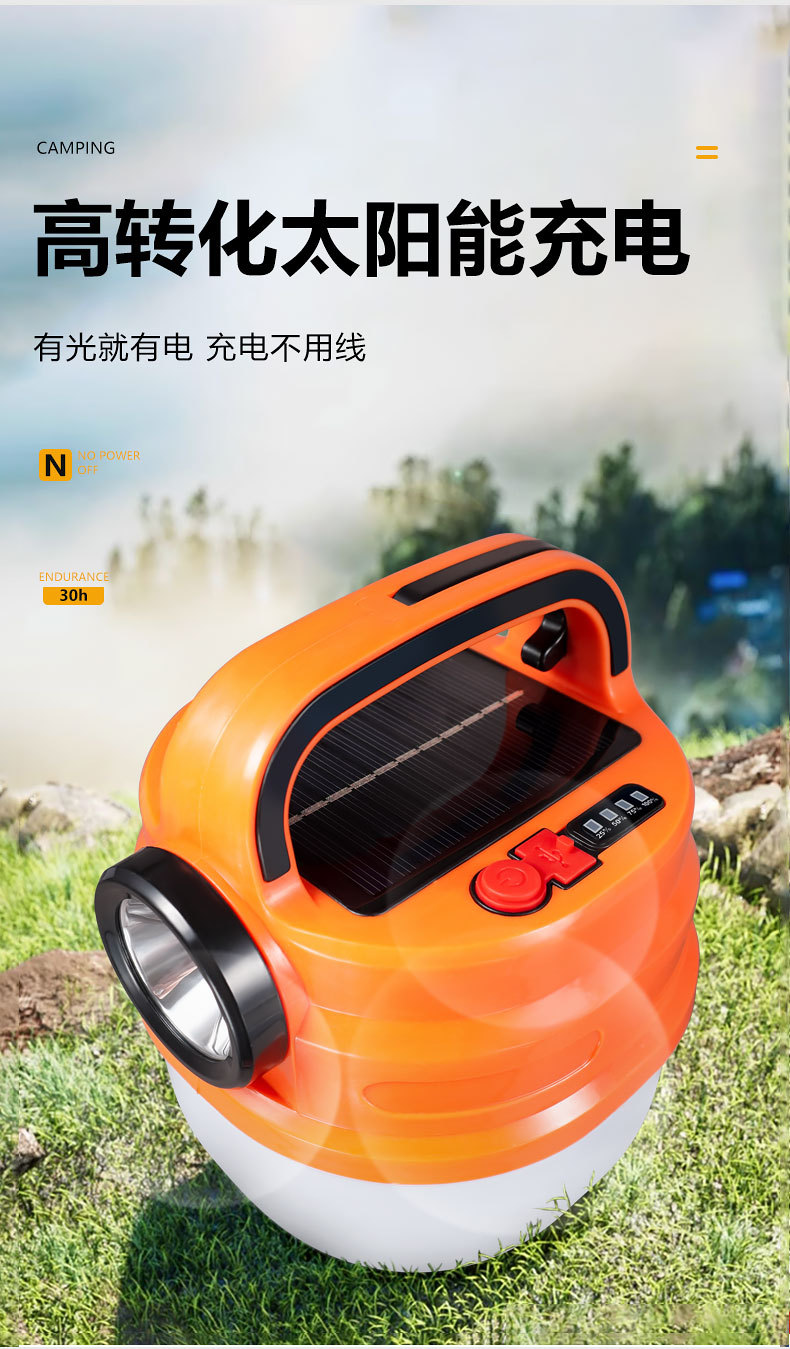 Luz solar multifuncional al aire libre lámpara de campamento de luz brillante lámpara de campamento de larga duración iluminación recargable LED doble fuente de luz
