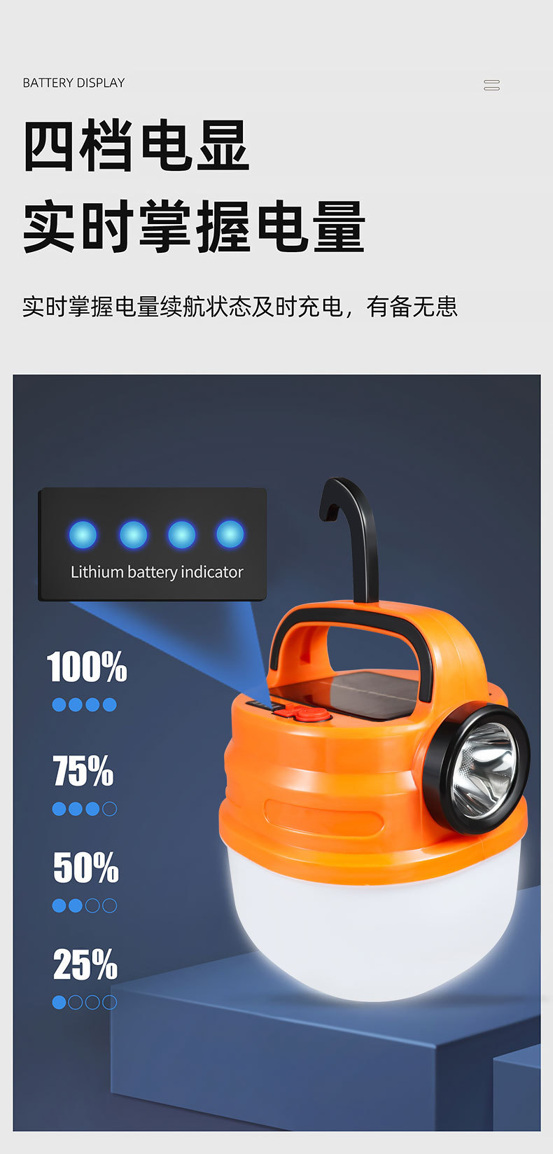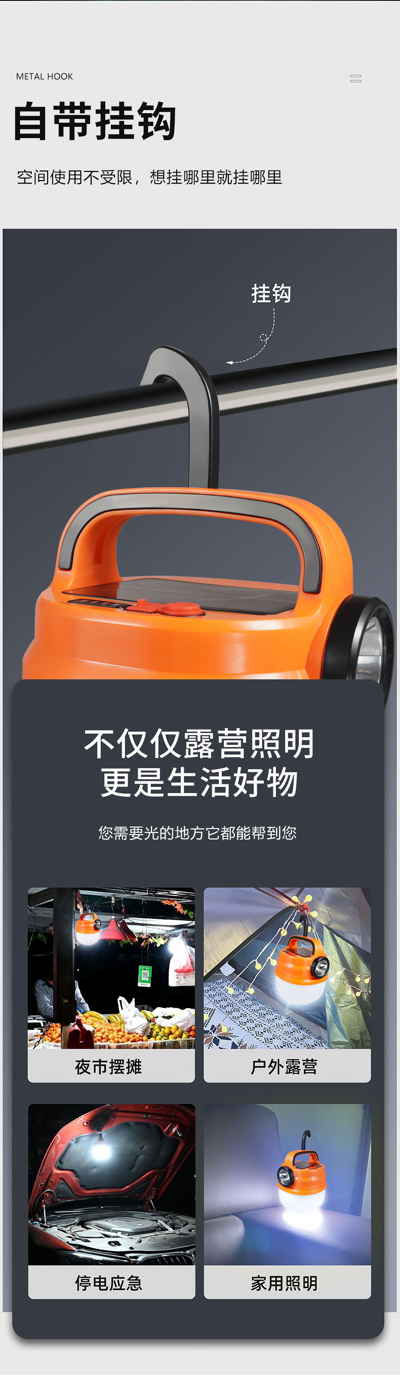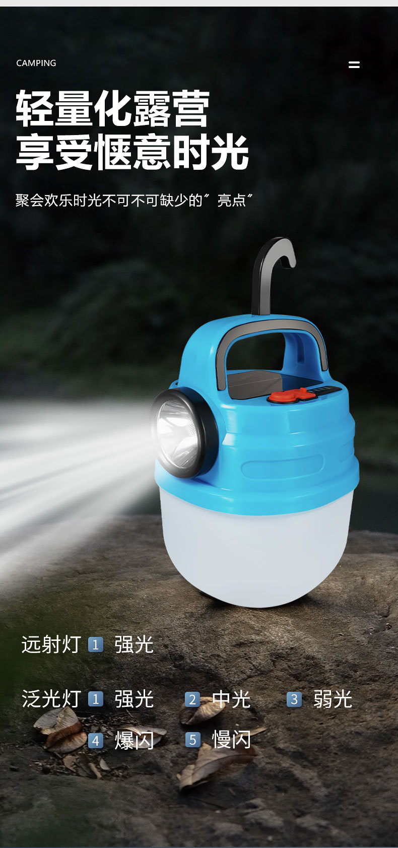 Luz solar multifuncional al aire libre lámpara de campamento de luz brillante lámpara de campamento de larga duración iluminación recargable LED doble fuente de luz