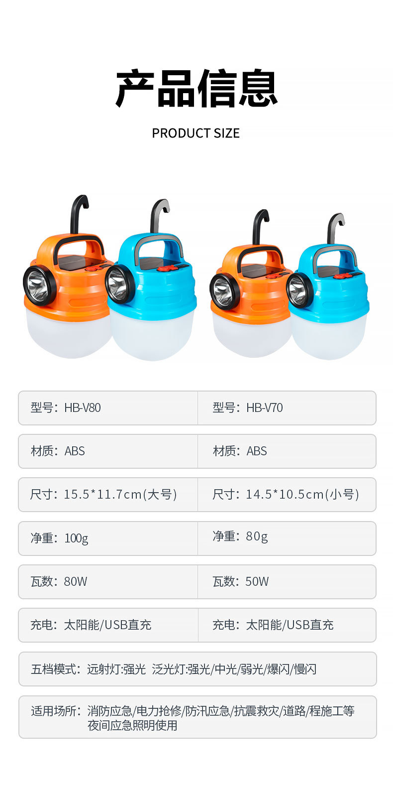 Luz de campamento solar pequeña naranja, luz de campamento solar grande naranja, luz de campamento solar pequeña azul, luz de campamento solar grande azul