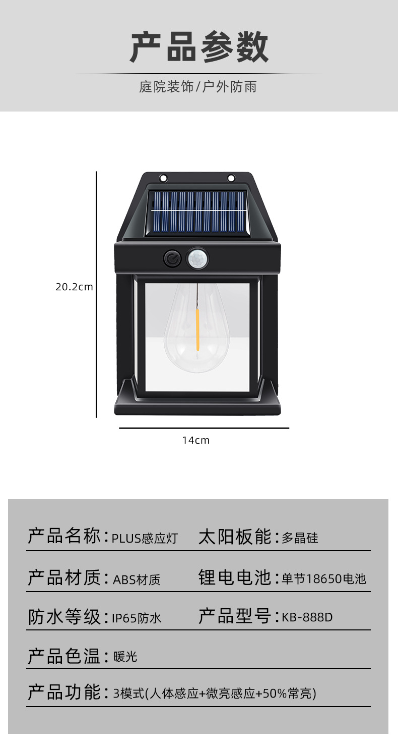 | Tamaño exterior | Lámpara de inducción solar SH - 888 (batería 18650) |