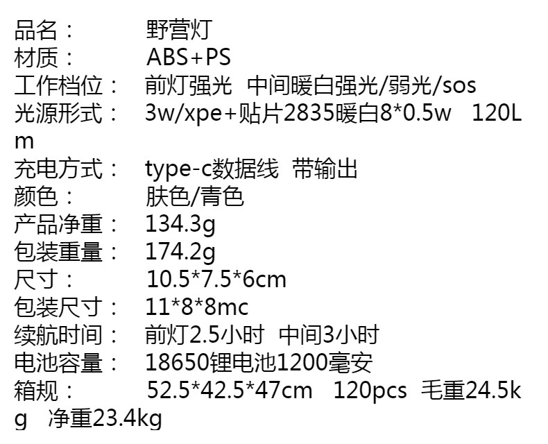 | Categoría de producto | Camping Luz |