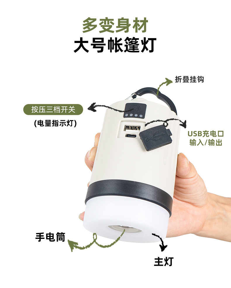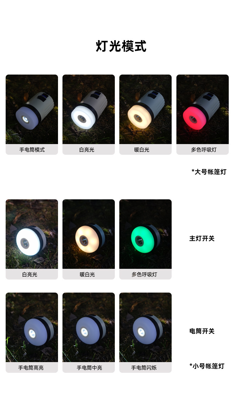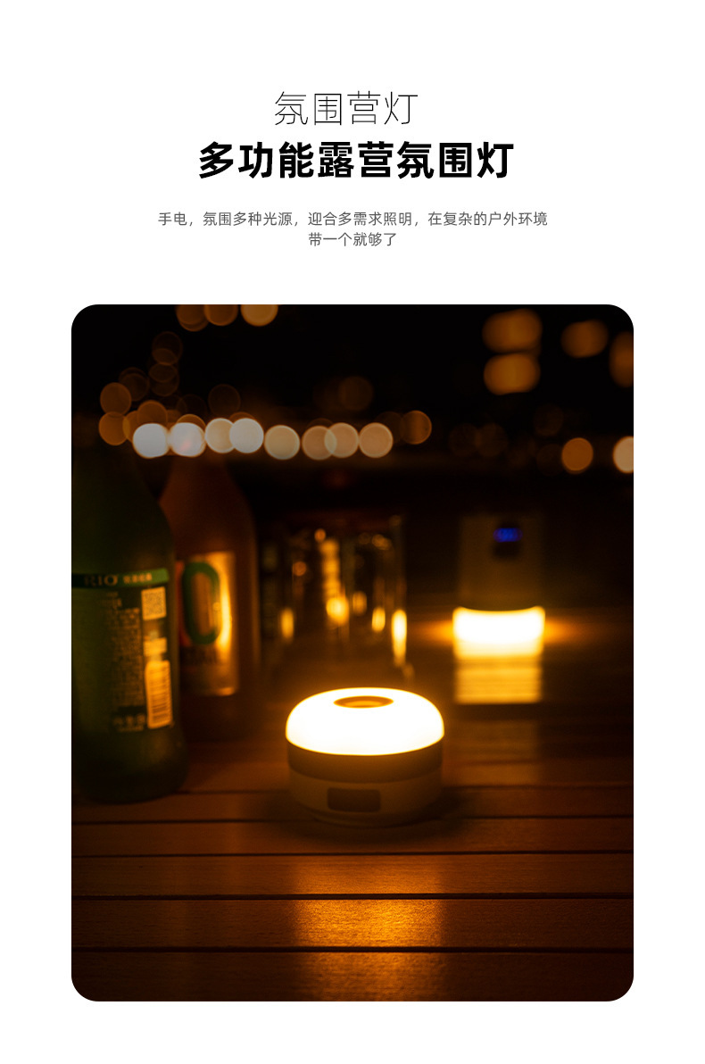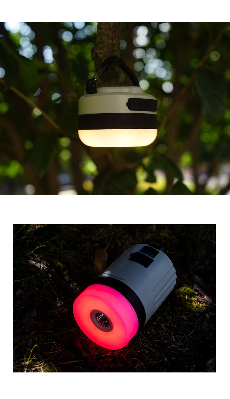 Nuevo al aire libre recargable linterna de luz fuerte portátil multi-funcional luz cálida que cambia de color camping campamento linterna luz de la tienda