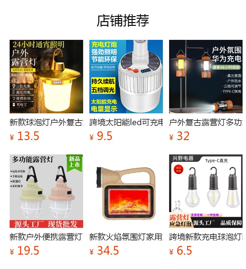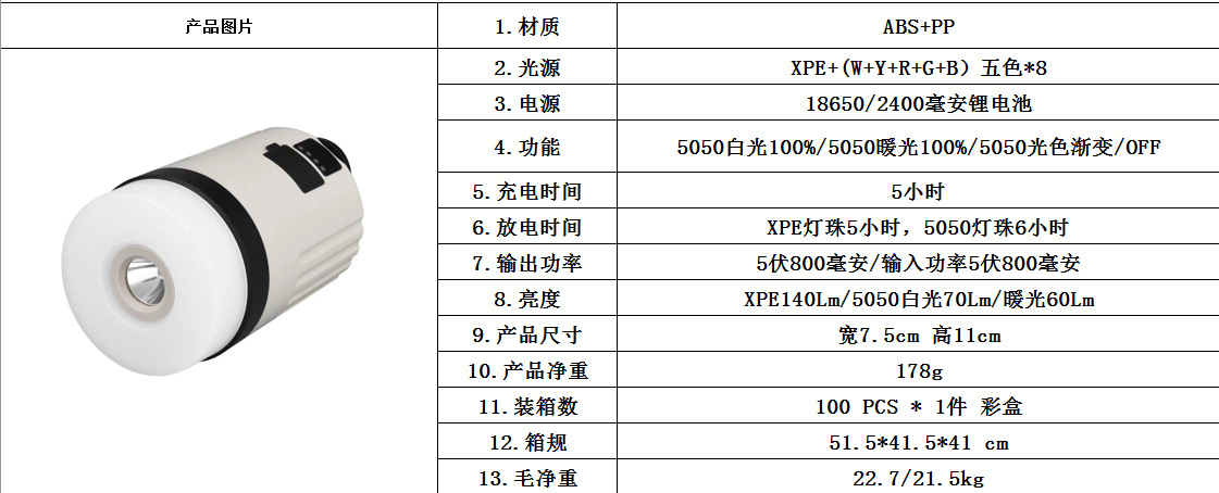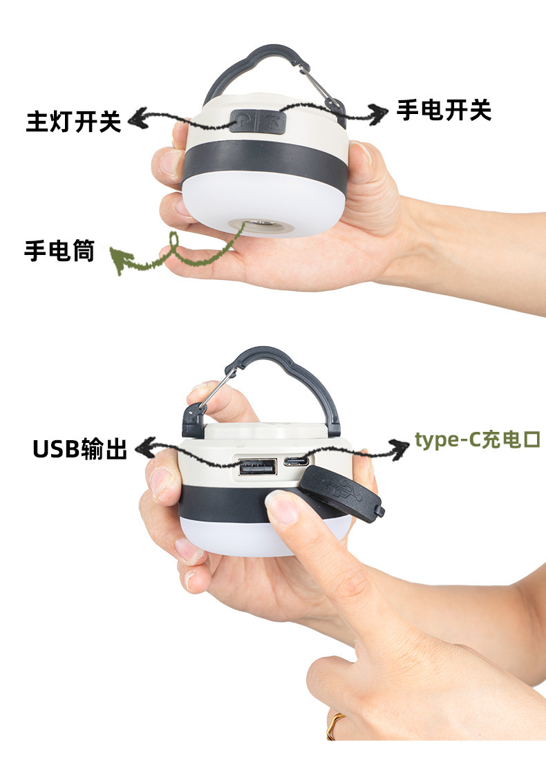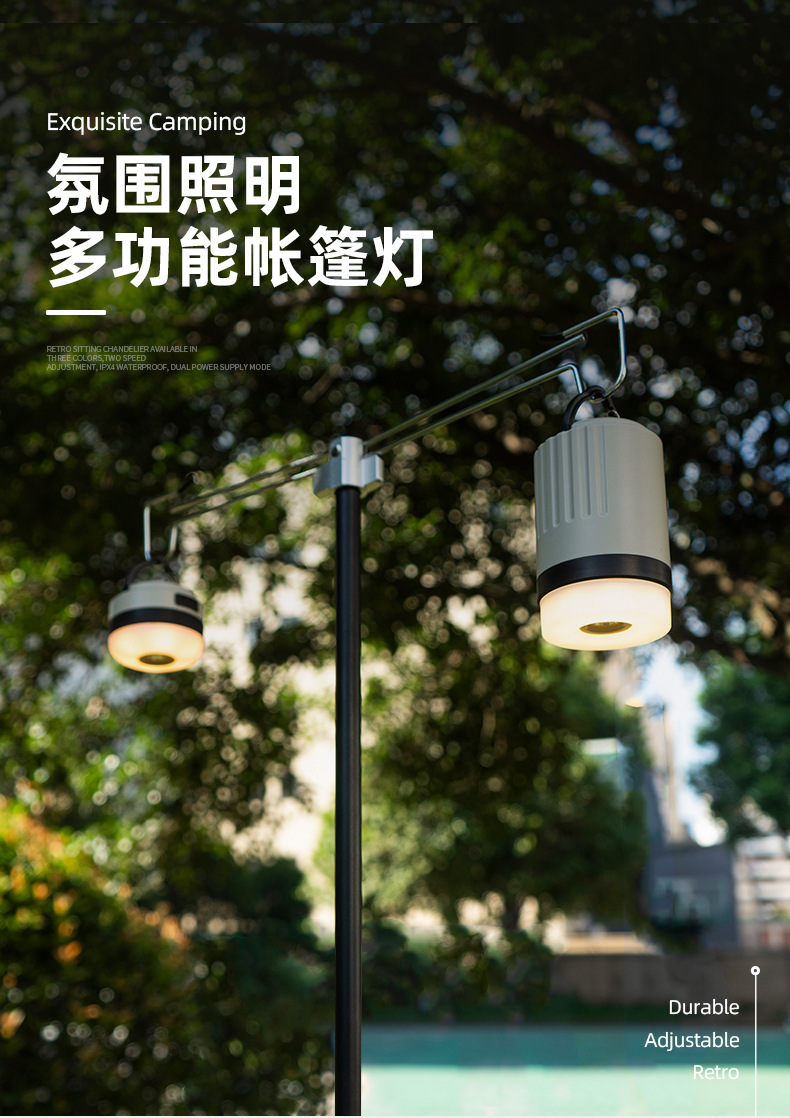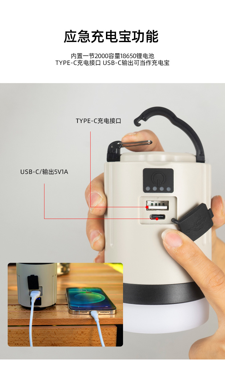 Nuevo al aire libre recargable linterna de luz fuerte portátil multi-funcional luz cálida que cambia de color camping campamento linterna luz de la tienda