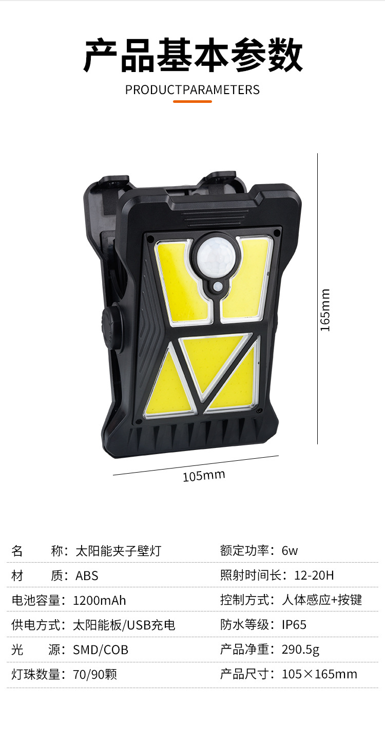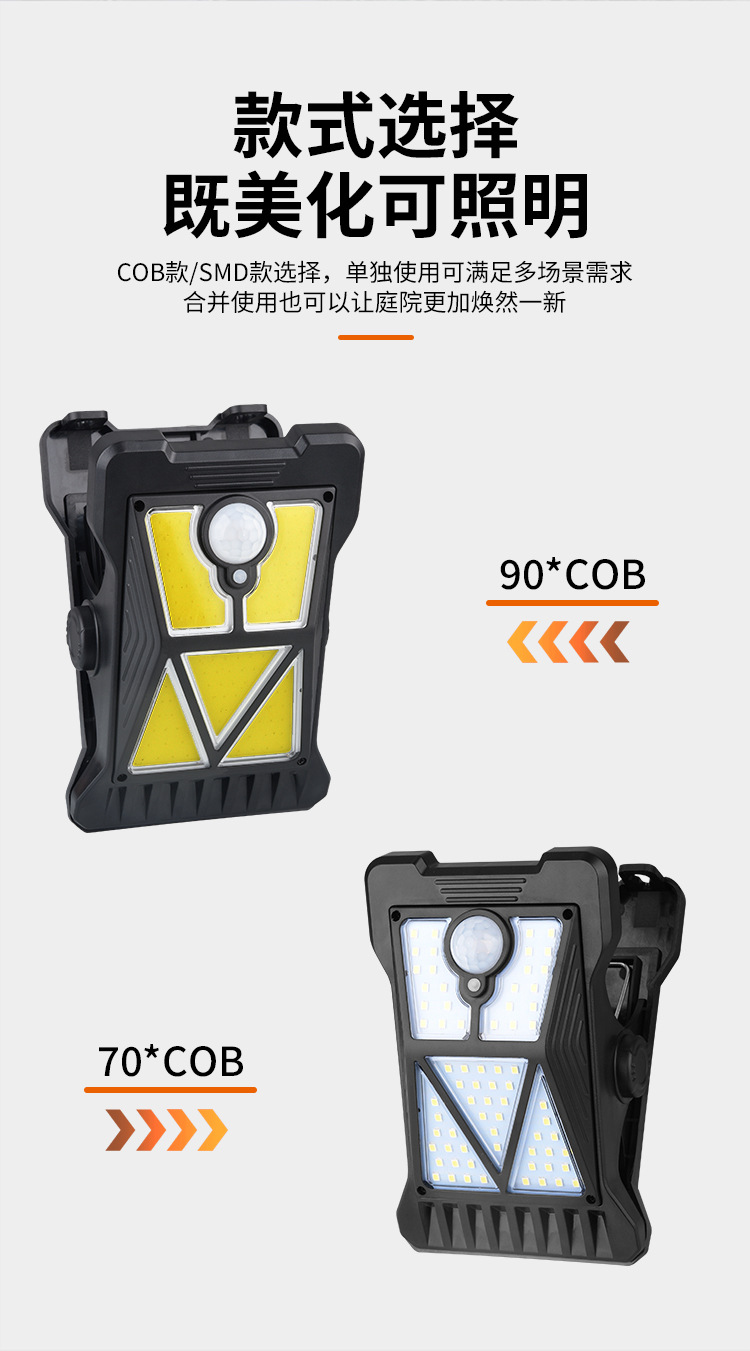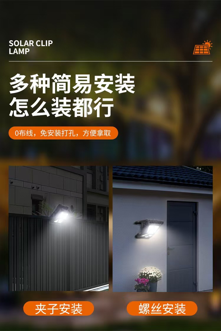Transfronterizo nueva lámpara de clip portátil solar LED iluminación de inducción humana lámpara de pared de jardín