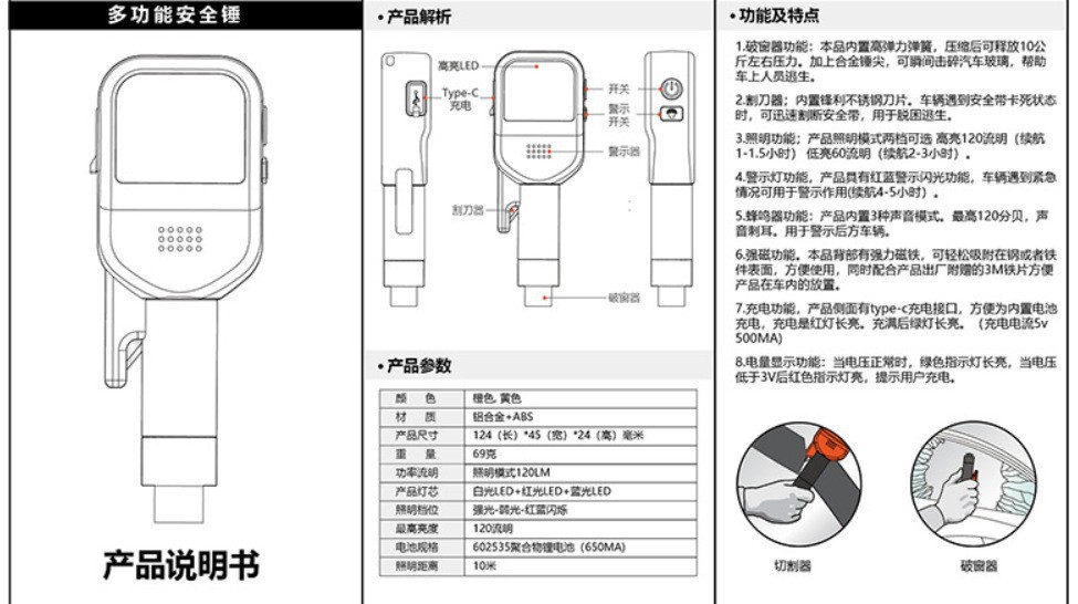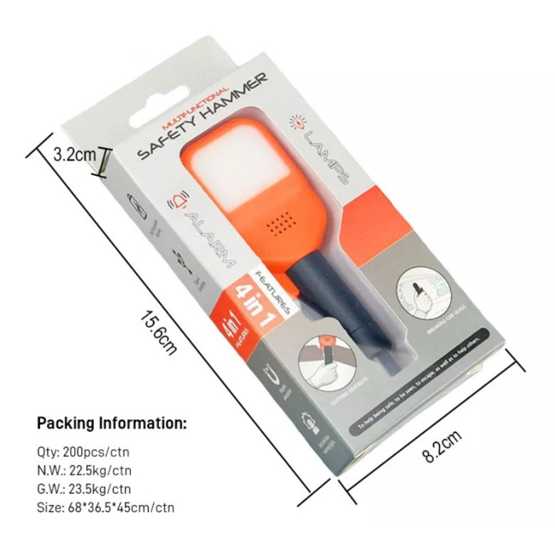 Rompiendo ventanas de automóviles, presione el martillo salvavidas eyector, luz de advertencia de luz roja y azul del automóvil, luz de herramienta de reparación de alarma de emergencia