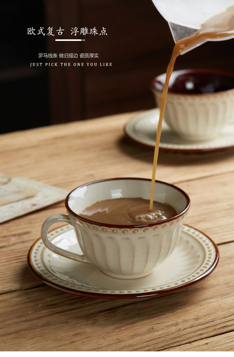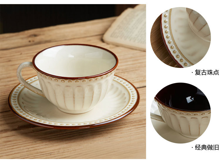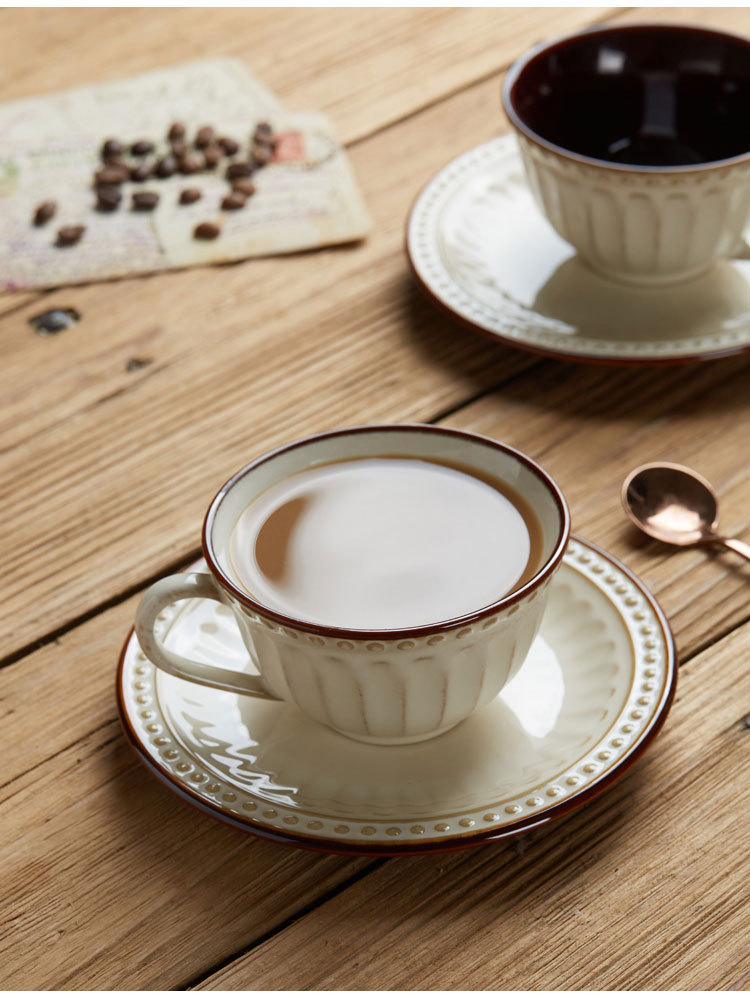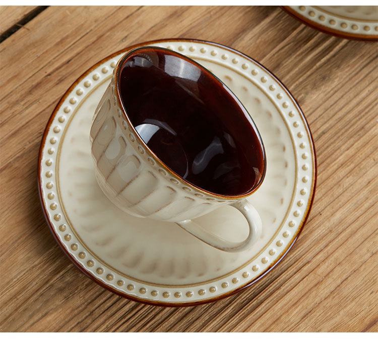 | color | Taza de café y platillo vintage en relieve,Cuchara de taza de café en relieve retro |