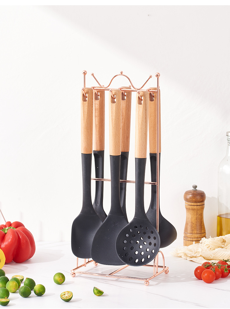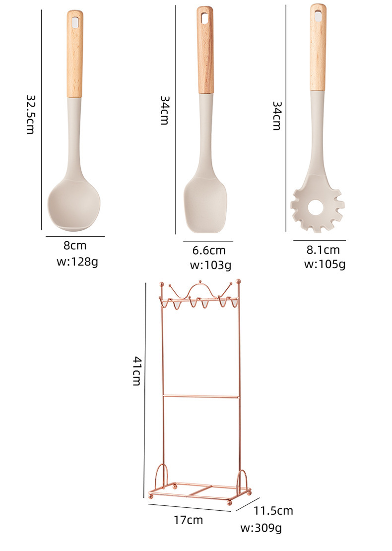 | Tamaño | Juego de siete piezas en negro con mango de madera y juego de siete piezas en blanco con mango de madera |