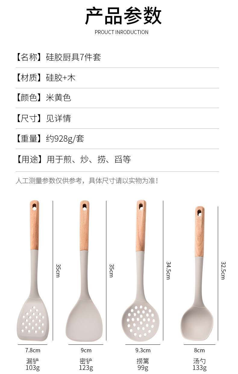 | Tamaño | Juego de utensilios de cocina de silicona de 7 |