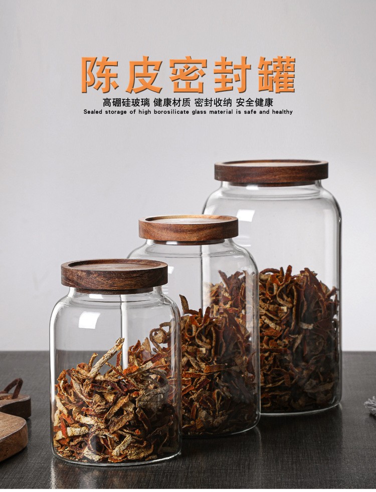 Tanque de almacenamiento de cáscara de naranja, tanque de sellado de vidrio, tanque de almacenamiento de té, botella de fruta seca de medicina tradicional china, sellado doméstico a prueba de humedad