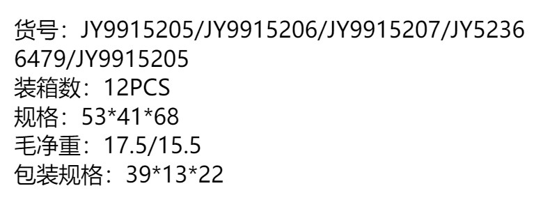 | Color | JY9915205,JY9915206,JY9915207,JY52366479,JY9915208 |