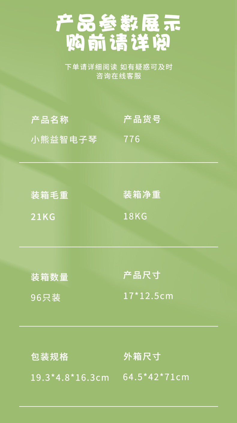 | Artículo No. | 776 oso rompecabezas órgano electrónico |