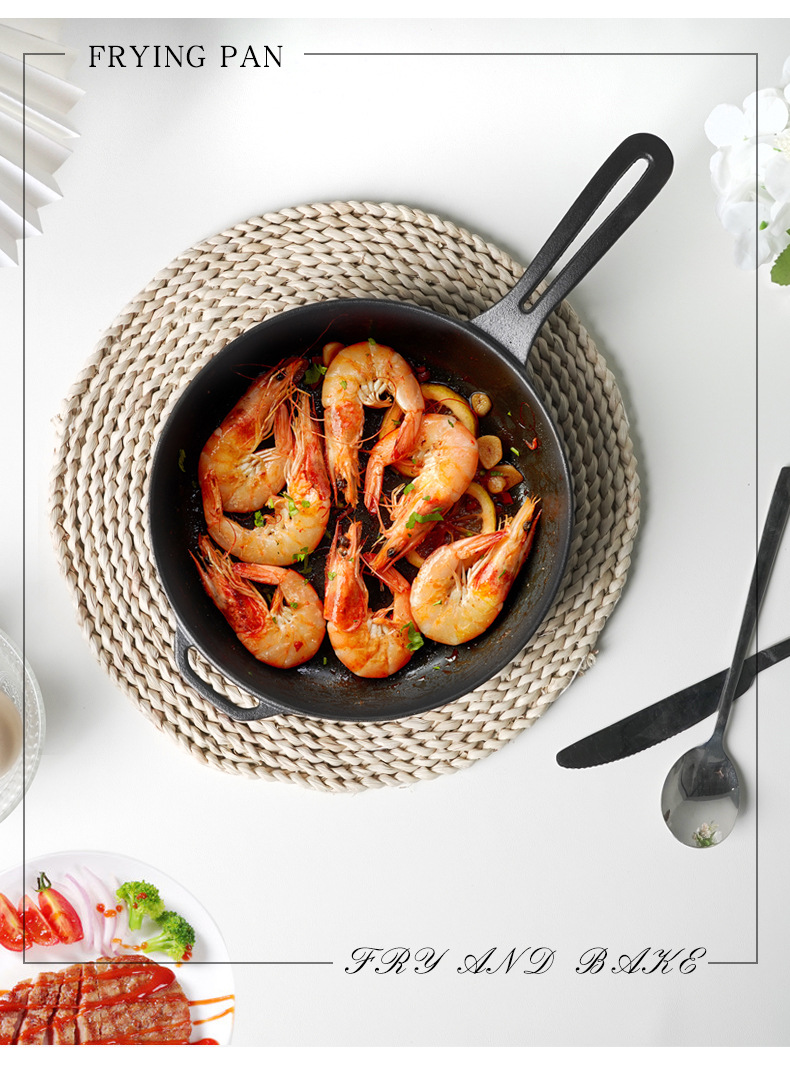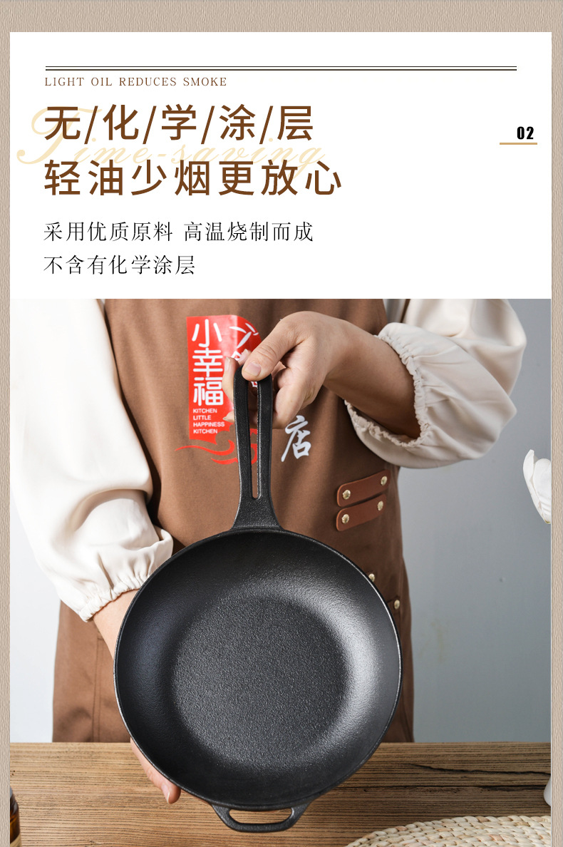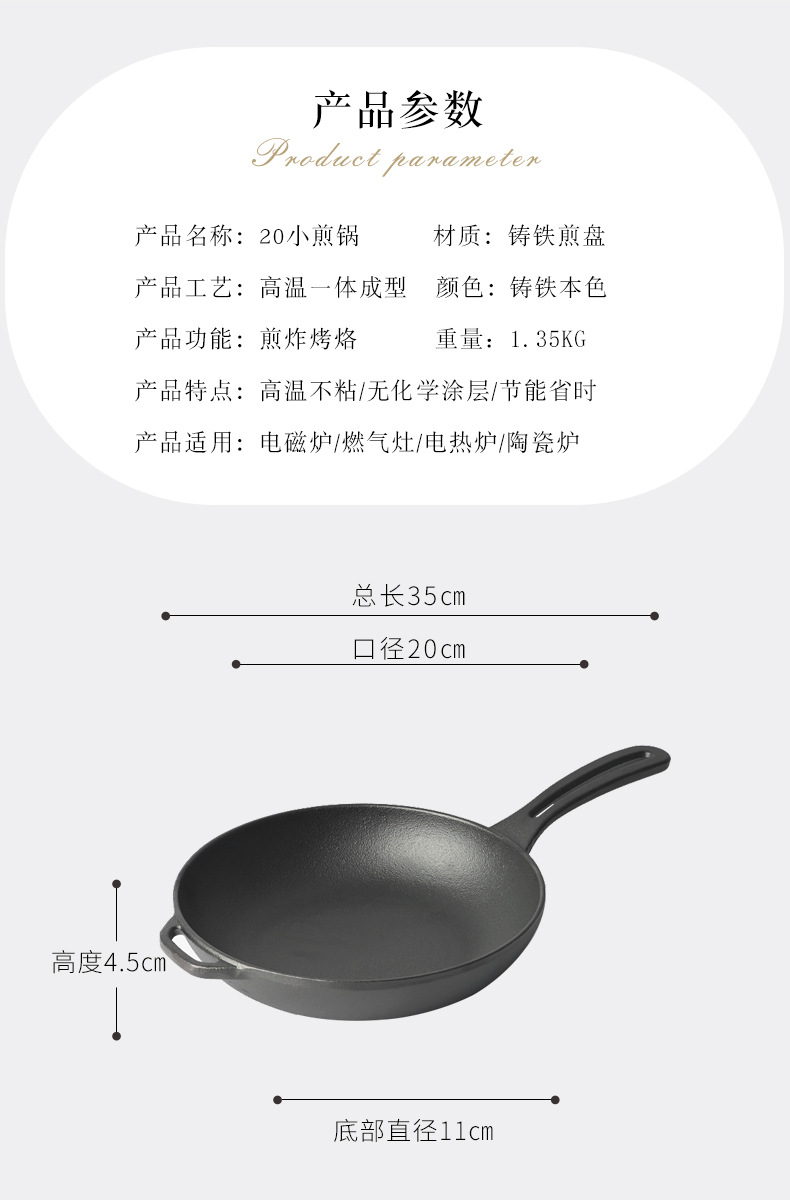 Pequeña felicidad 20cm de esmalte de hierro fundido plana sartén pequeña sartén antiadherente libre de humo chino huevo frito bistec pan Cocina de Inducción