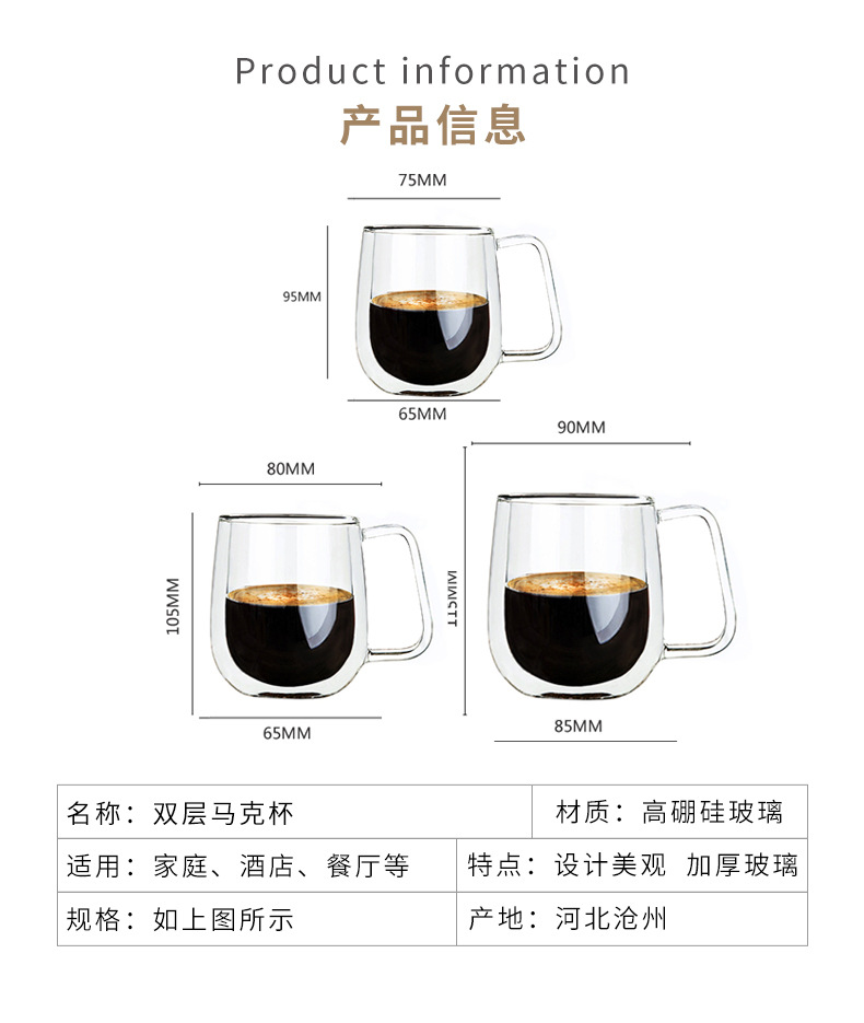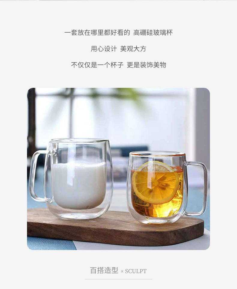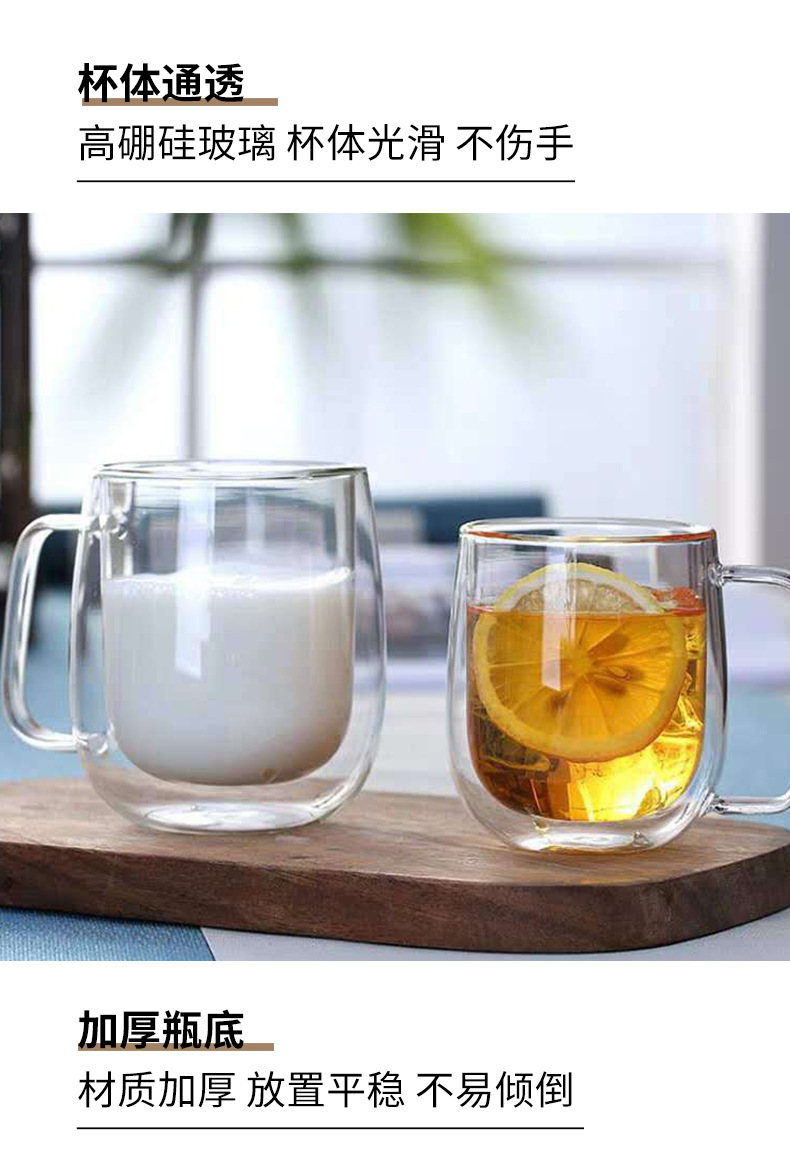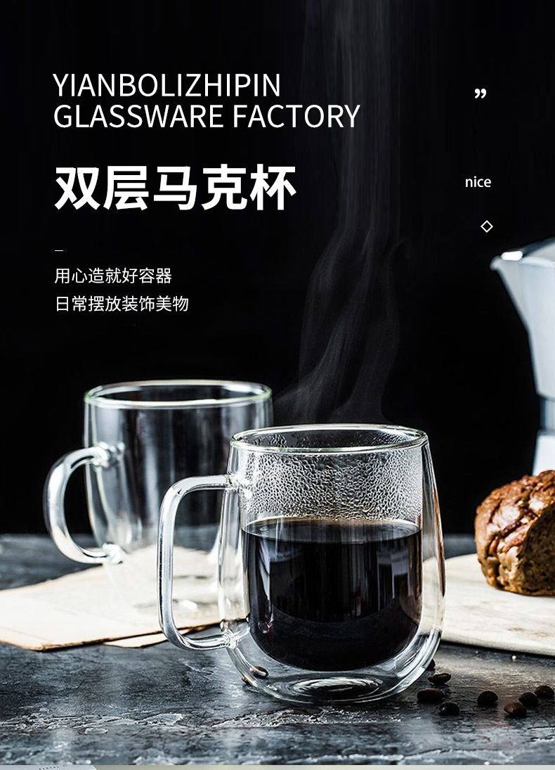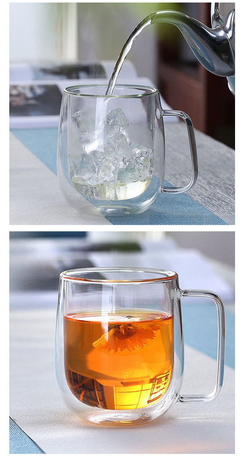 Fabricantes de alta transparencia de vidrio de borosilicato en stock para el hogar taza de té taza de jugo de leche taza de vidrio de doble capa aislante