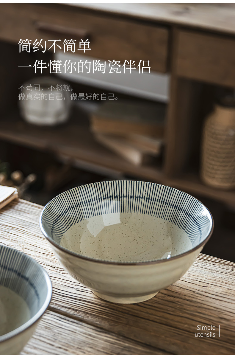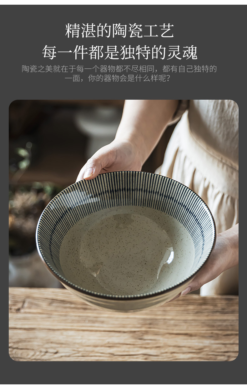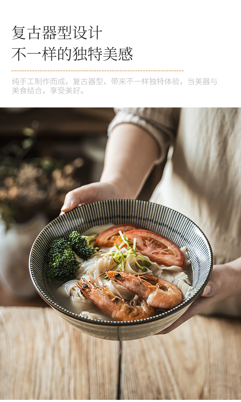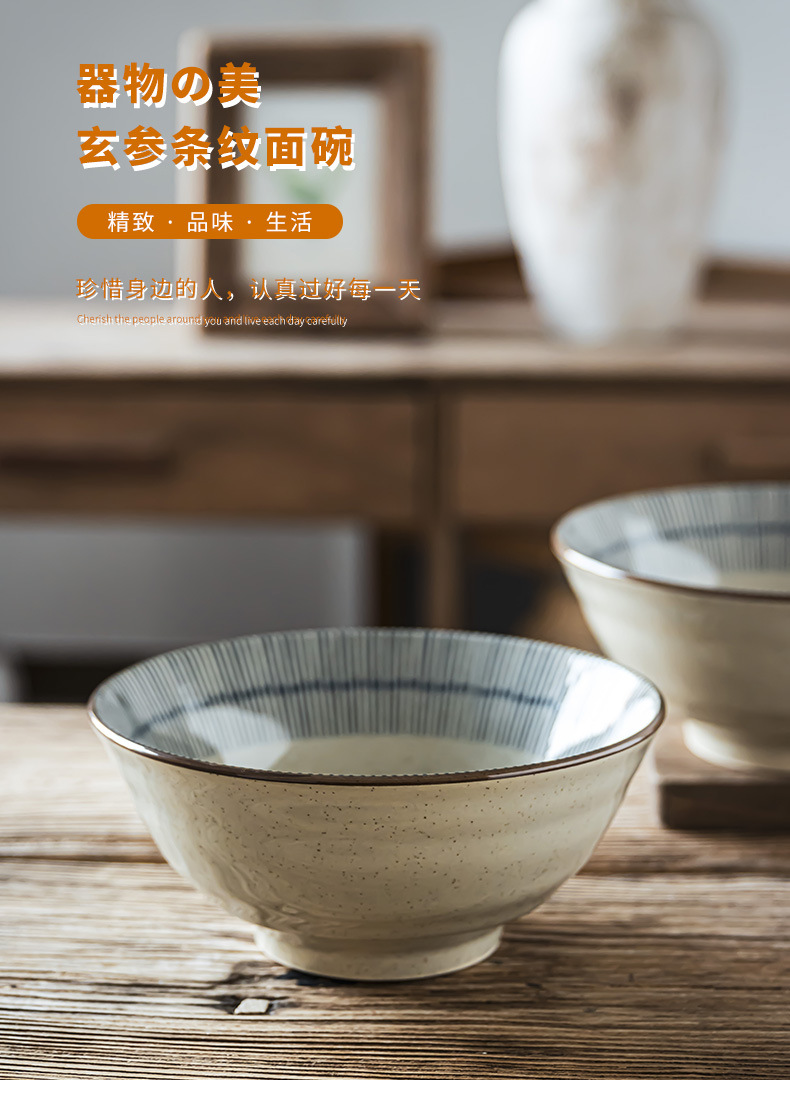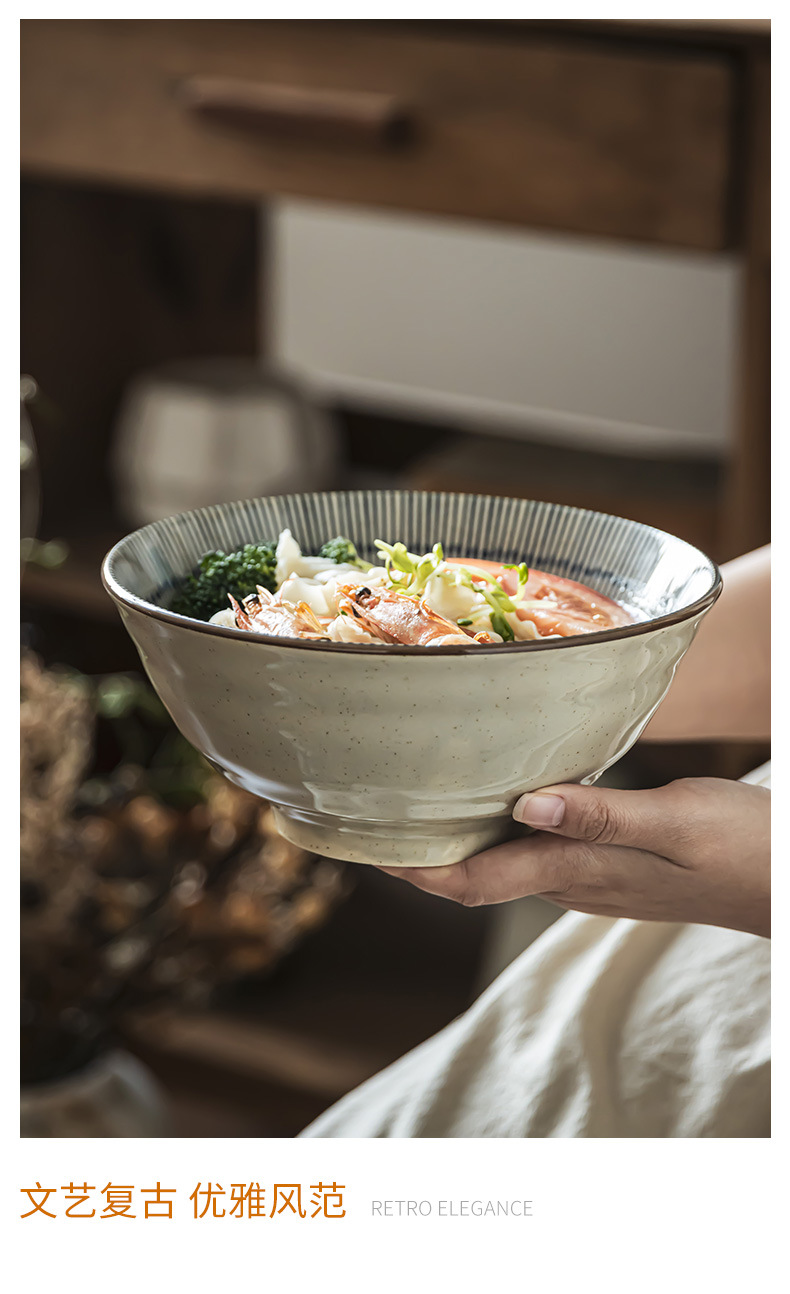 Tacos de mesa de cerámica retrógrada prácticos con rayas abiertas, tazón de fideos de alta calidad, tazón de ensalada de frutas, tazón de fideos doméstico para una persona