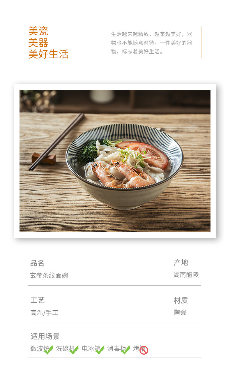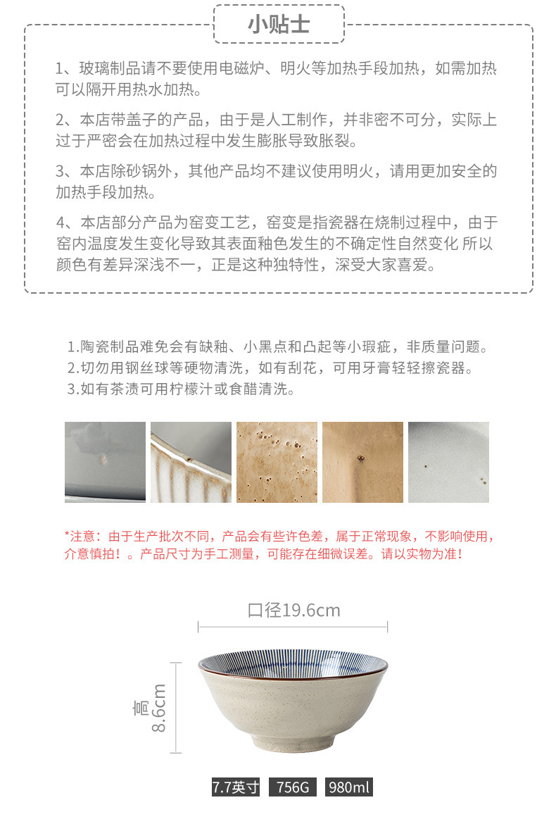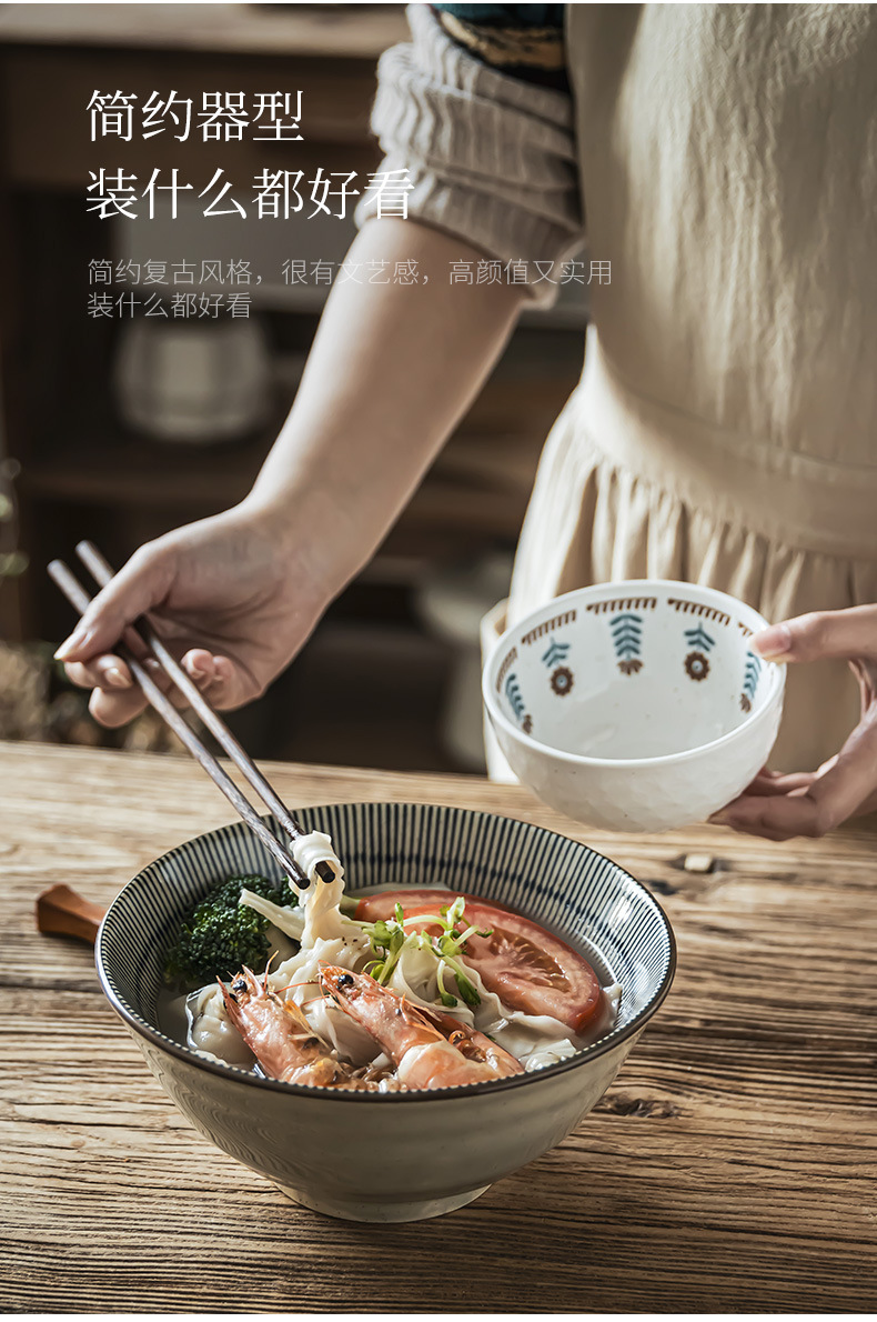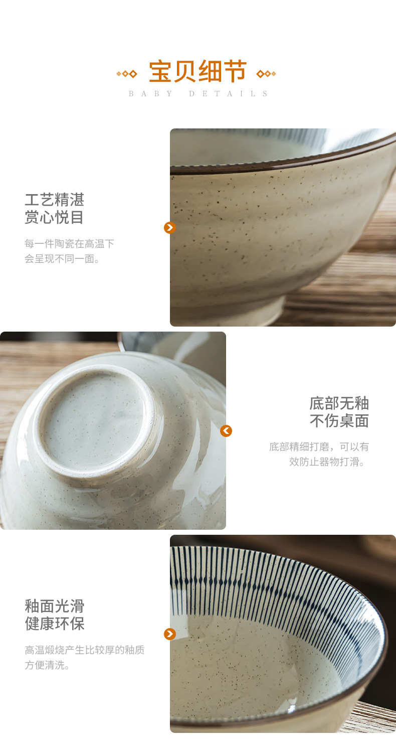 Tacos de mesa de cerámica retrógrada prácticos con rayas abiertas, tazón de fideos de alta calidad, tazón de ensalada de frutas, tazón de fideos doméstico para una persona