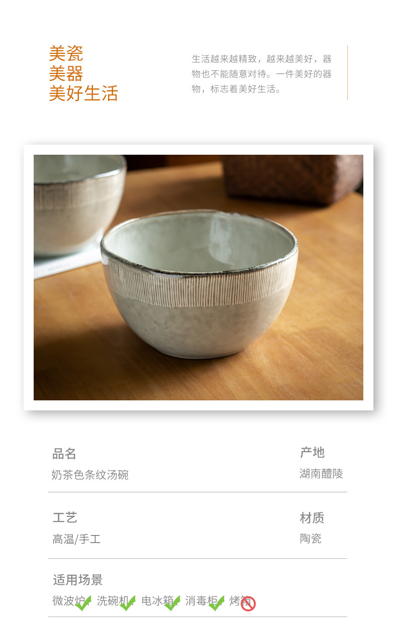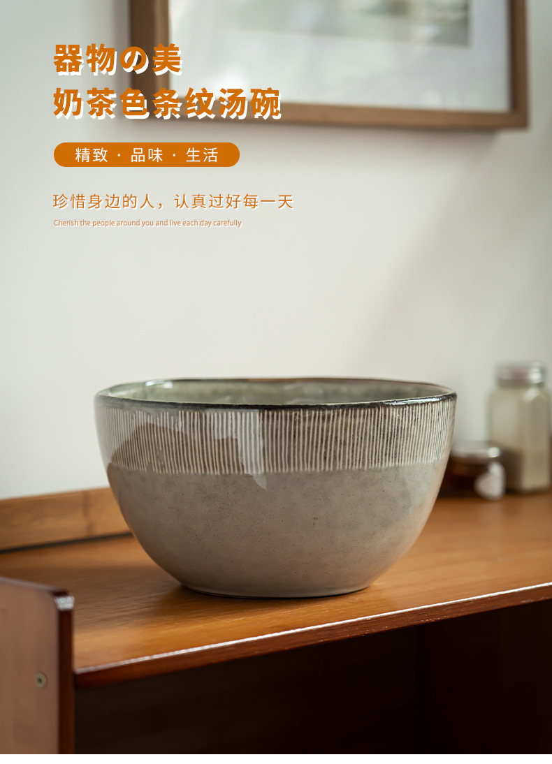 Tazón de sopa a rayas de color té con leche de 9 pulgadas (ligero defecto)