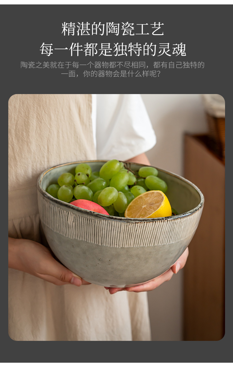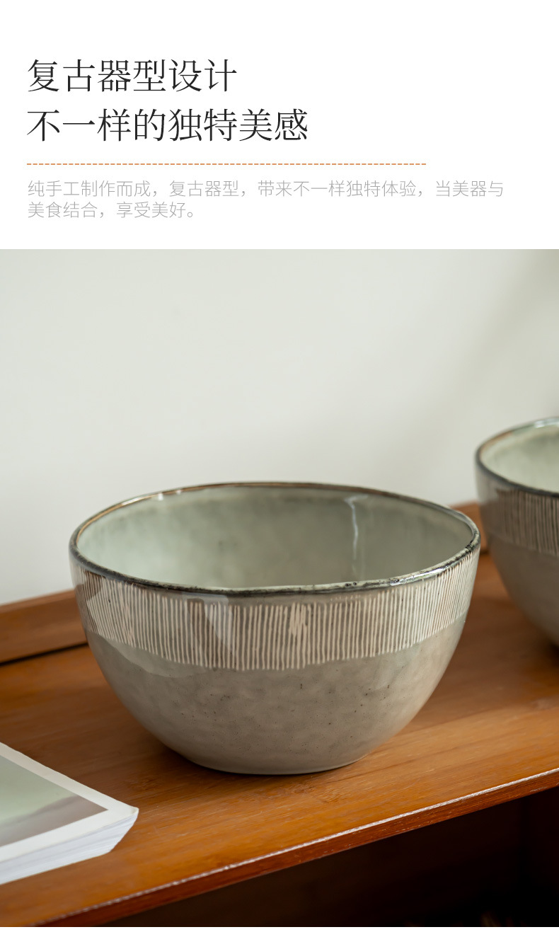 Retro líneas dibujadas a mano de cerámica cuencos profundos cuencos de frutas caseras cuencos de pescado enchufe cuencos de gran capacidad cuencos de sopa cuencos de cubiertos