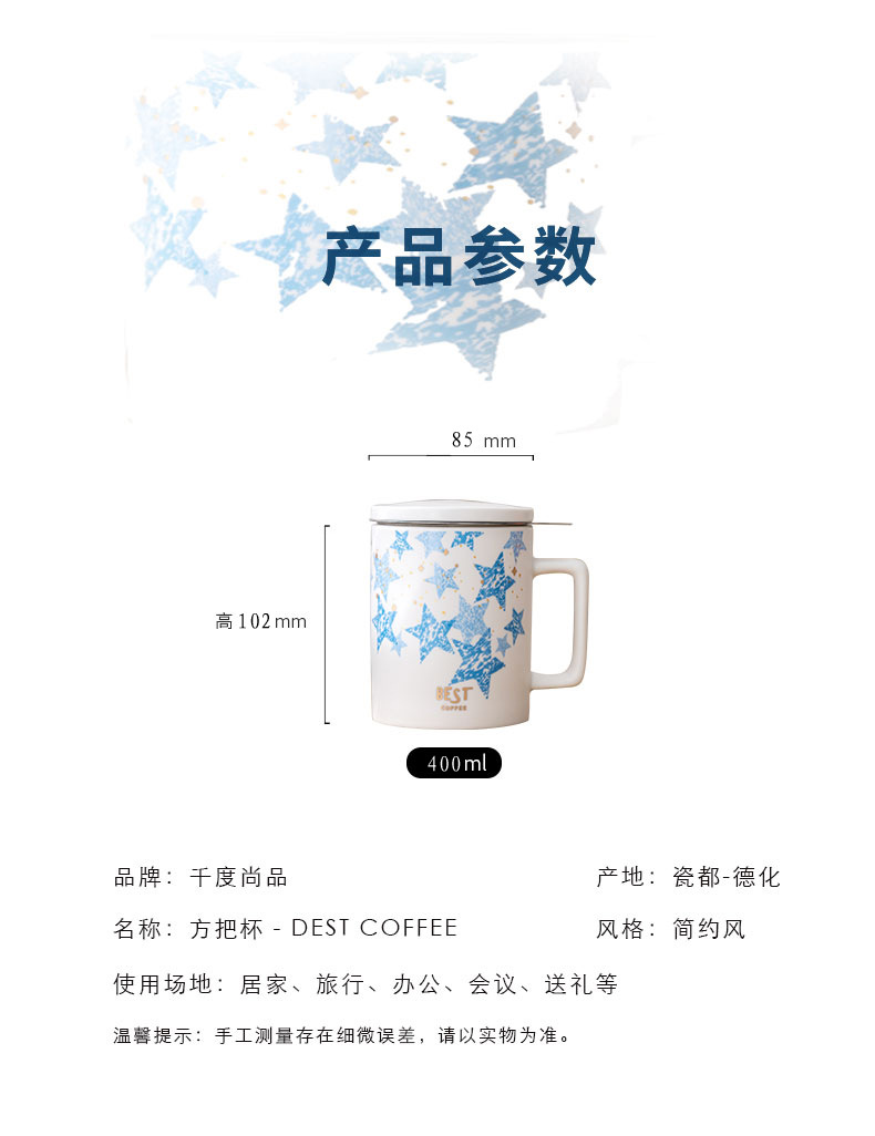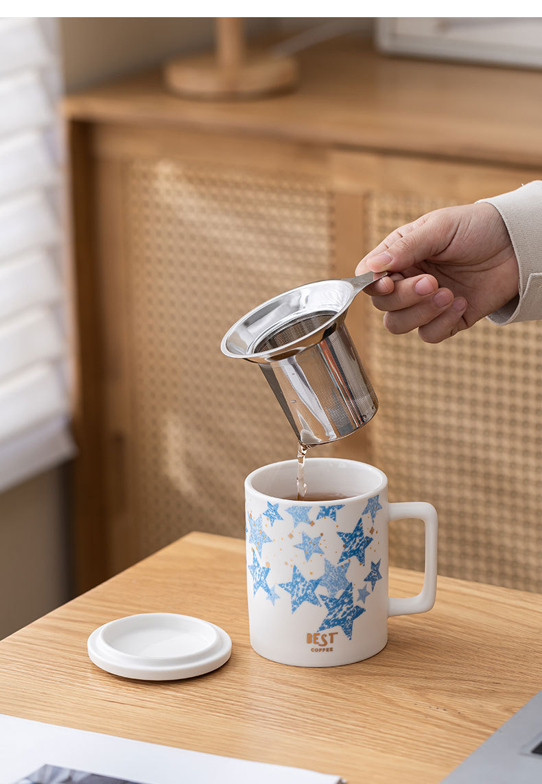 | Color | Blanco simple + filtro de acero inoxidable + cubierta de porcelana, azul oscuro + filtro de acero inoxidable + cubierta de porcelana, blanco simple + filtro de acero inoxidable + cubierta de porcelana con caja de regalo, azul oscuro + filtro de acero inoxidable + cubierta de porcelana con caja de regalo |