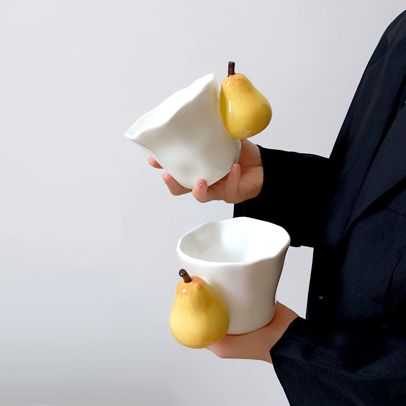 | Color | Dibujo a mano - Copa de uva de la reina Nina - esmalte, pintura a mano - nunca la copa de pera - esmalte, pintura a mano - taza Rui - esmalte, caqui + caqui (caja de regalo verde doble taza) |