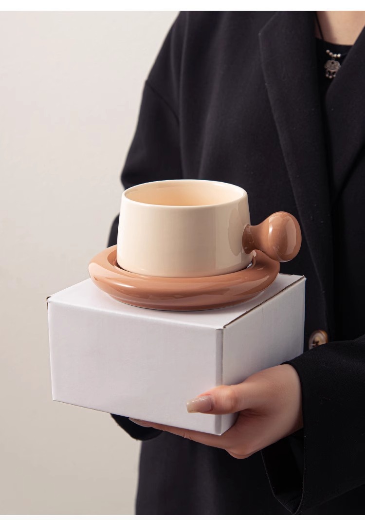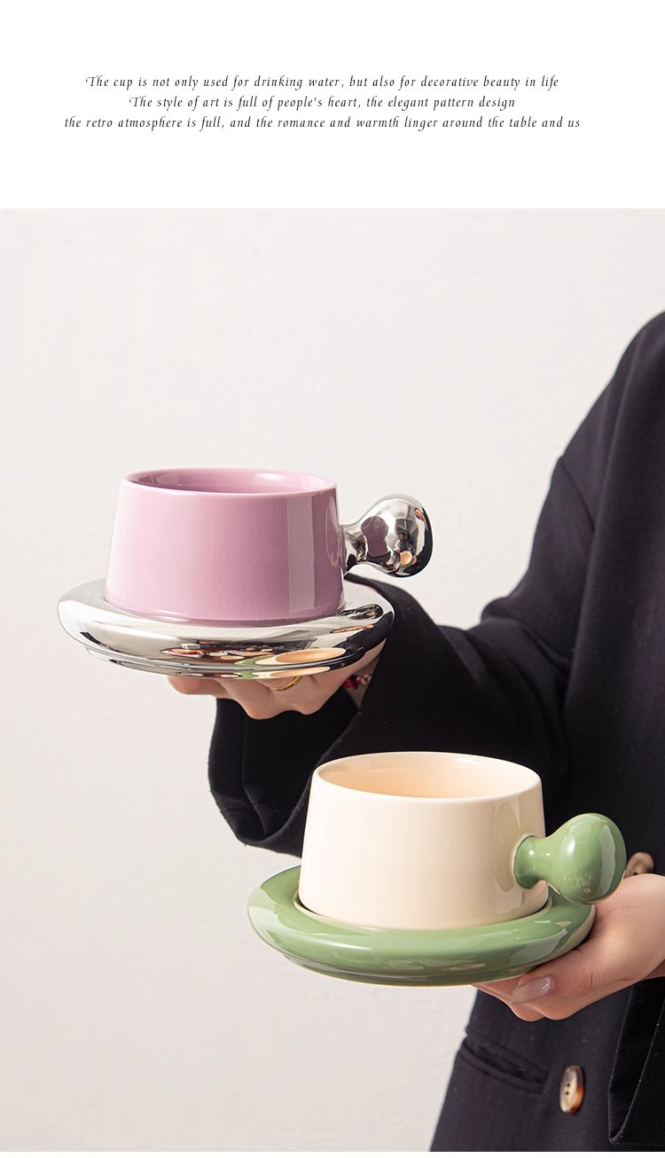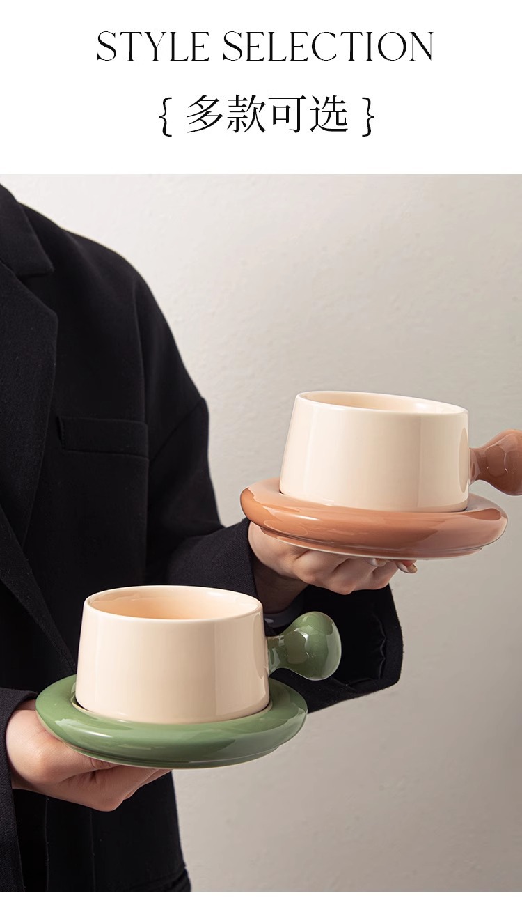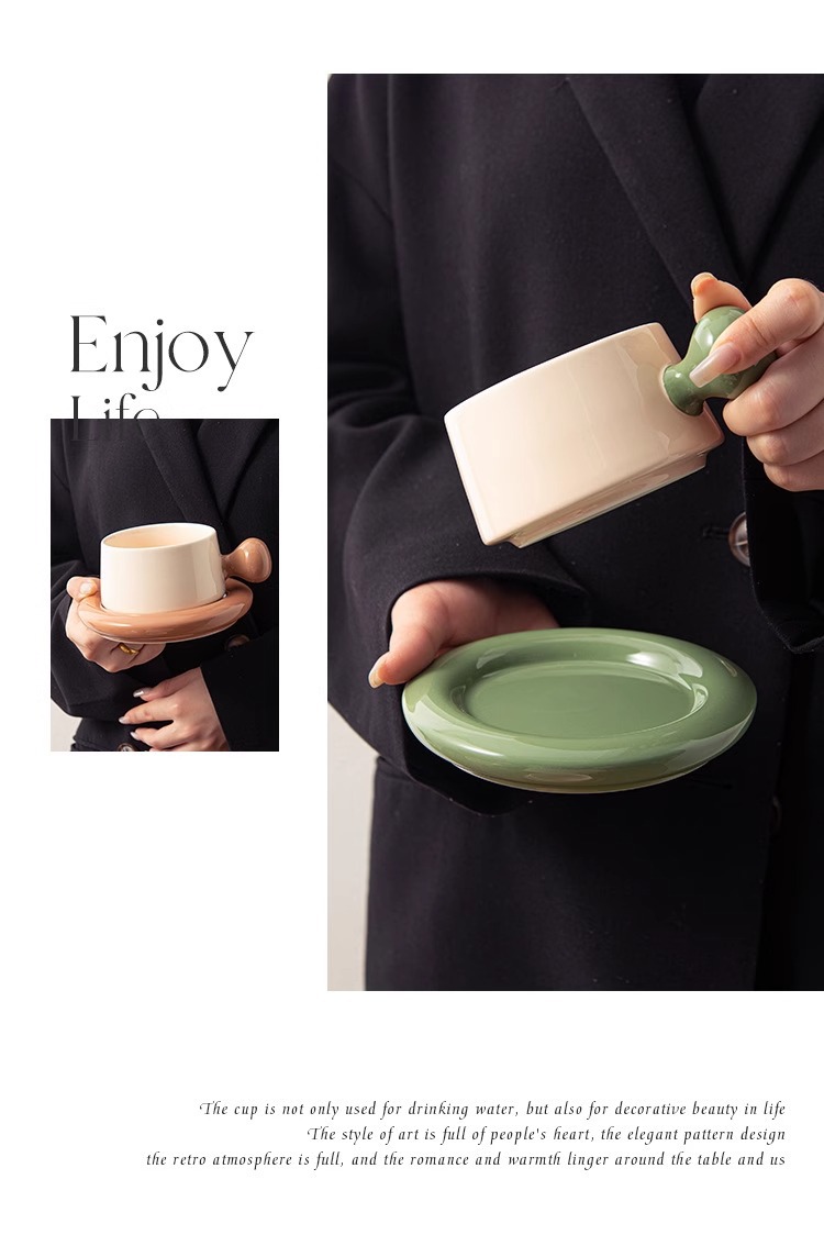 | Color | Mango redondo - plato de taza de café - Verde leche, Mango redondo - plato de taza de café - color café de albaricoque |