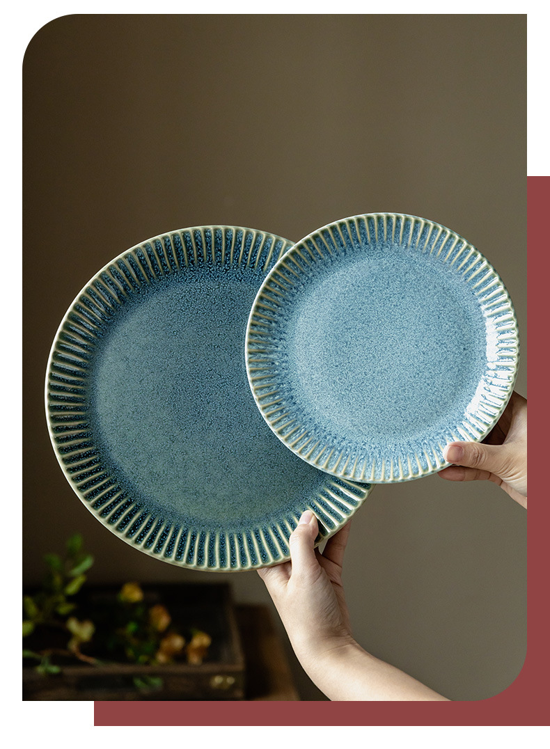 Vajilla de plato grande de cerámica en relieve de alta calidad, exquisito postre doméstico, plato de aperitivos, plato de pasta de bistec de restaurante de cambio de horno