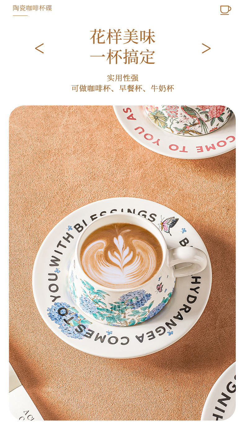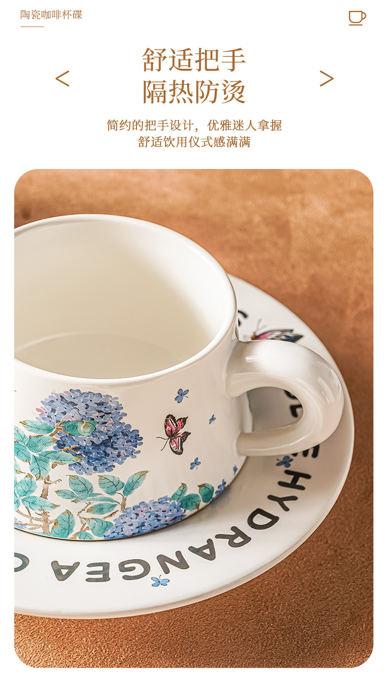 Nuevo diseño original de verano infinito hortenida taza de café plato taza de cerámica taza de desayuno regalo de acompañante de alto nivel