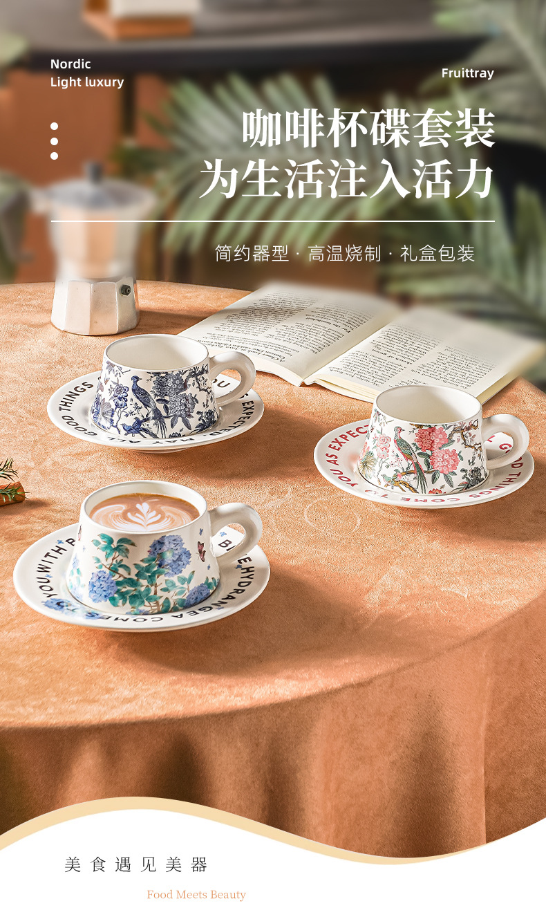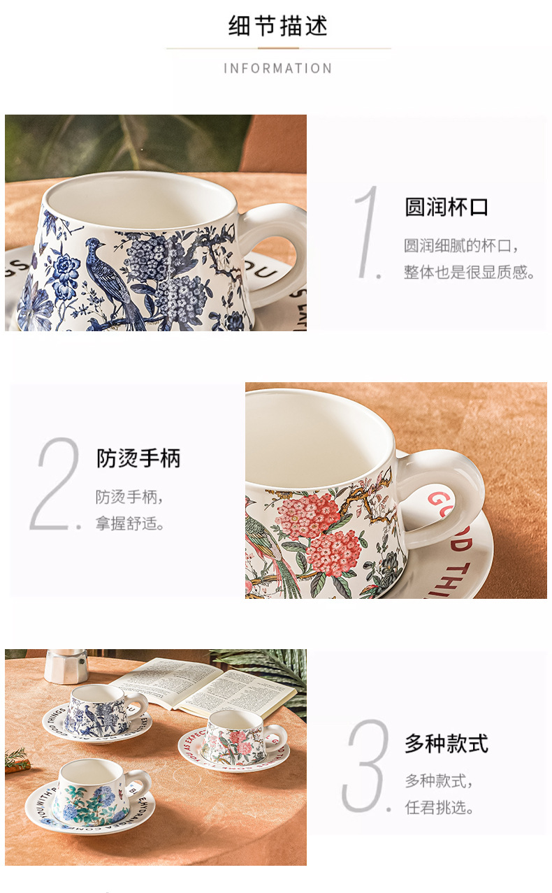 Tazas de café de lujo europeas de cerámica de oficina Taza de té de la tarde Taza de té de flores de oficina