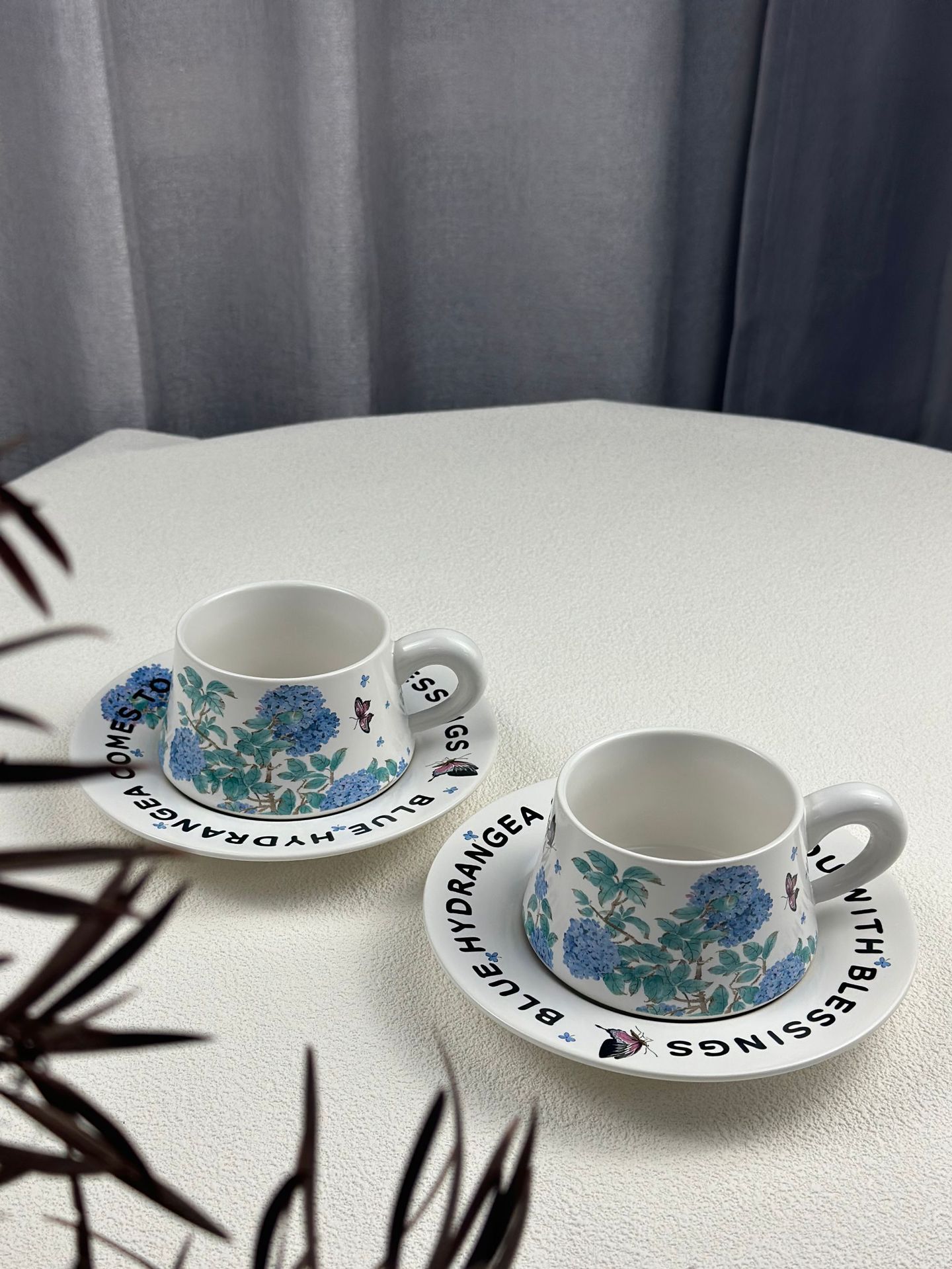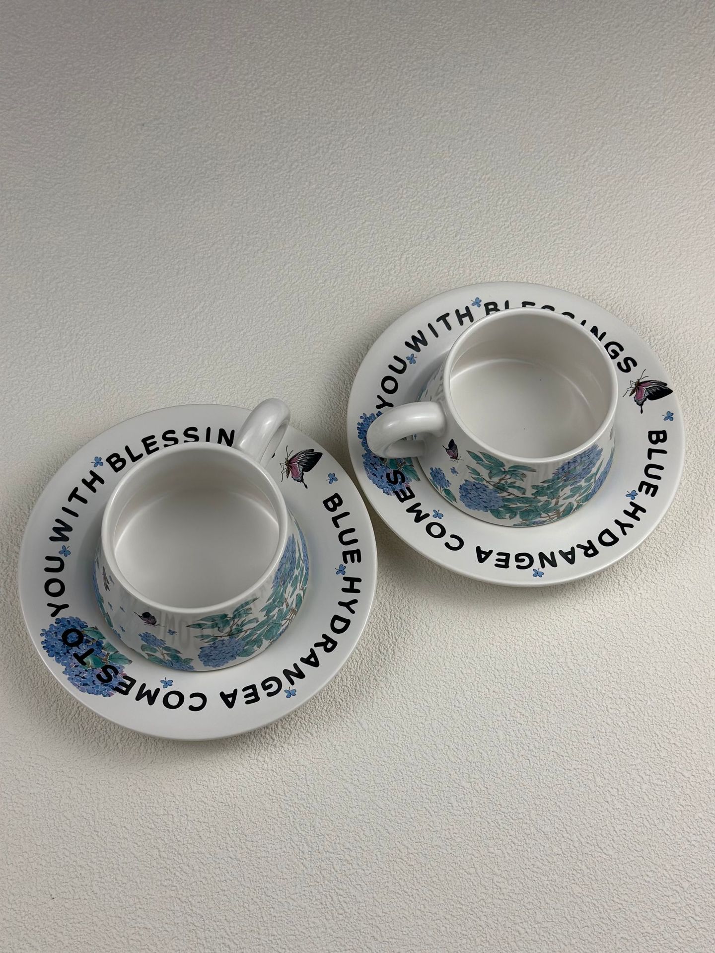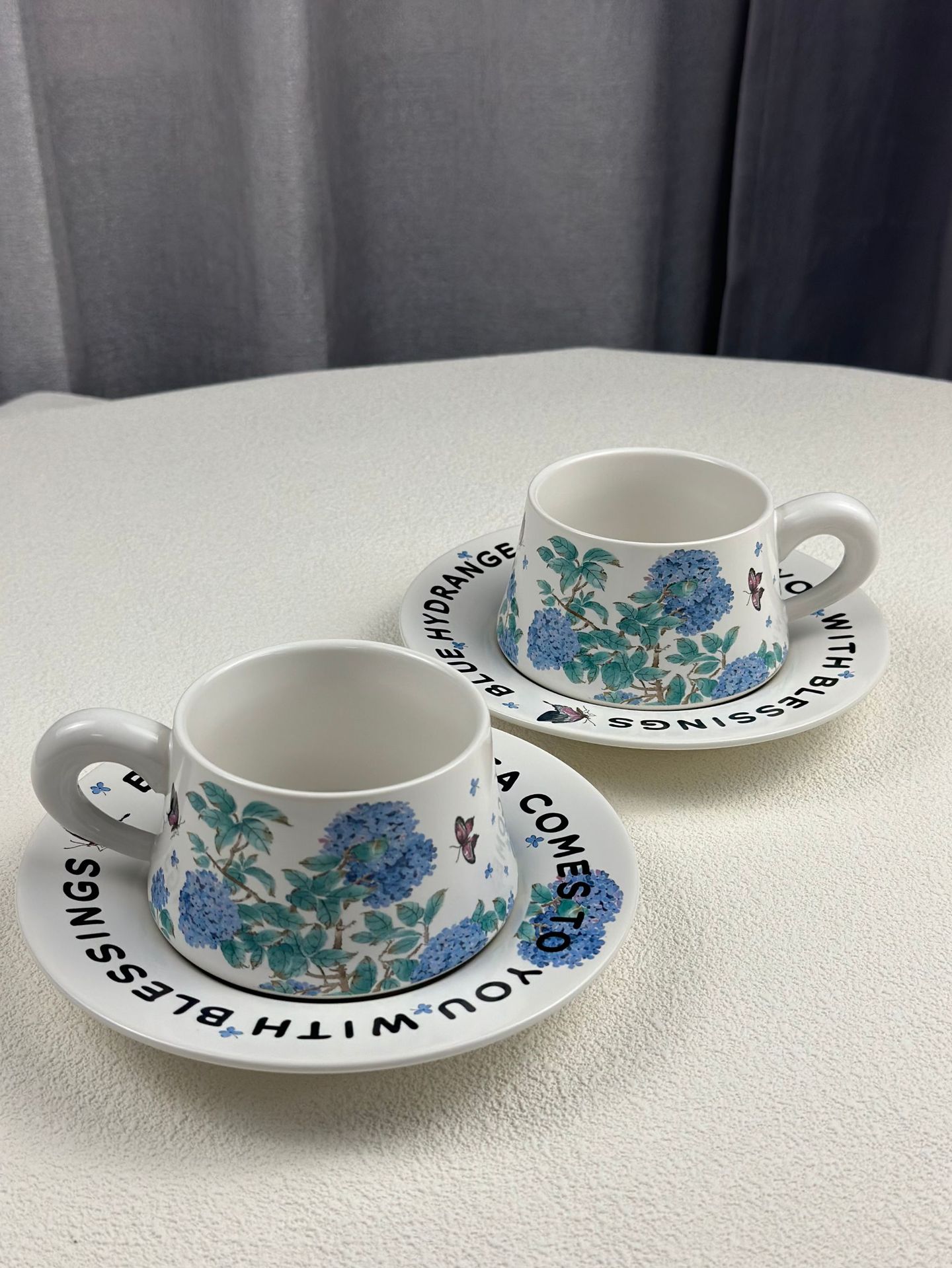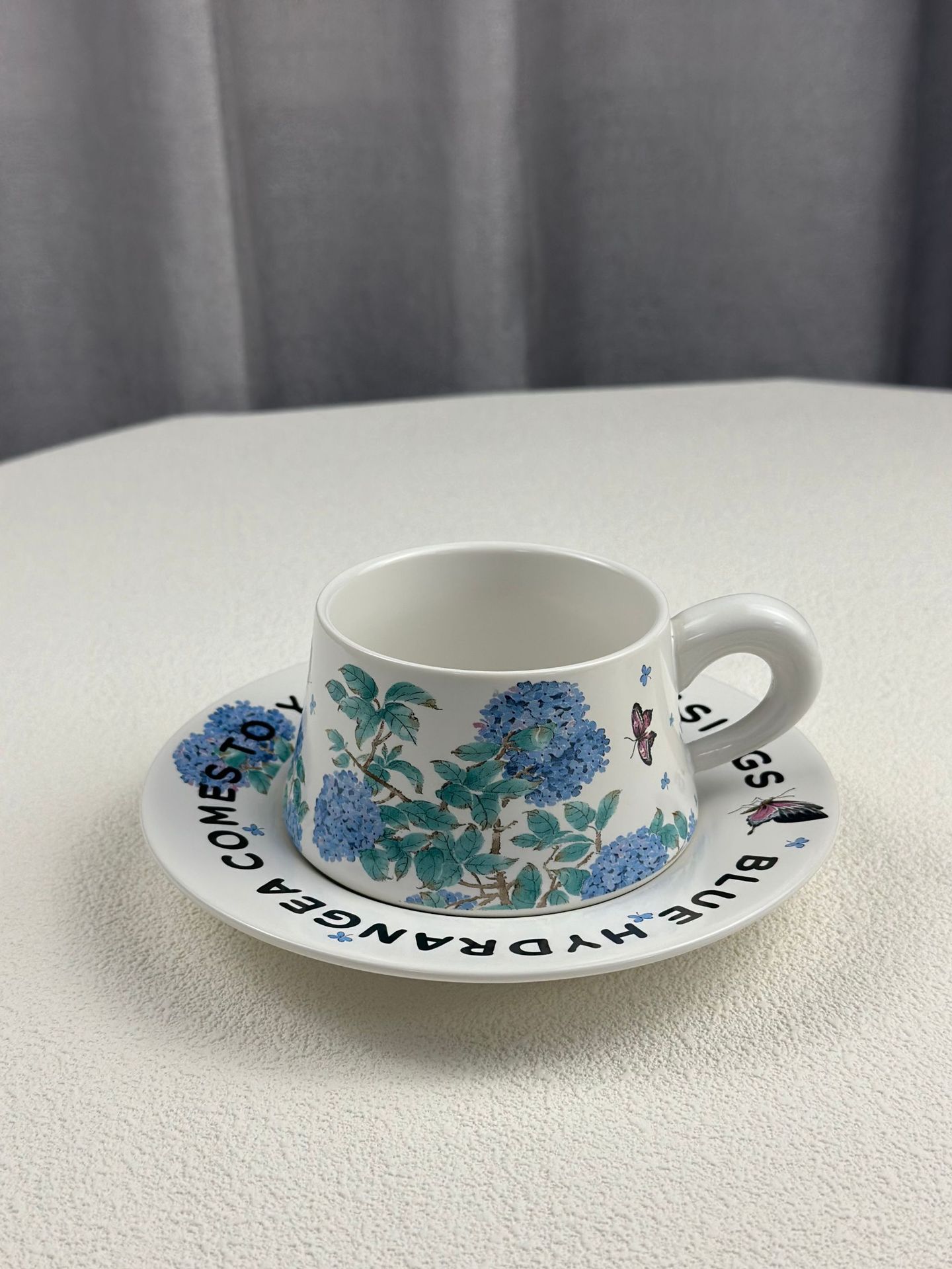 Tazas de hortenida de verano sin fin, tazas de café, platos de regalo de mano francesa, diseñador de flores retro, tazas de marca originales