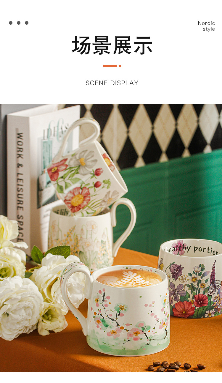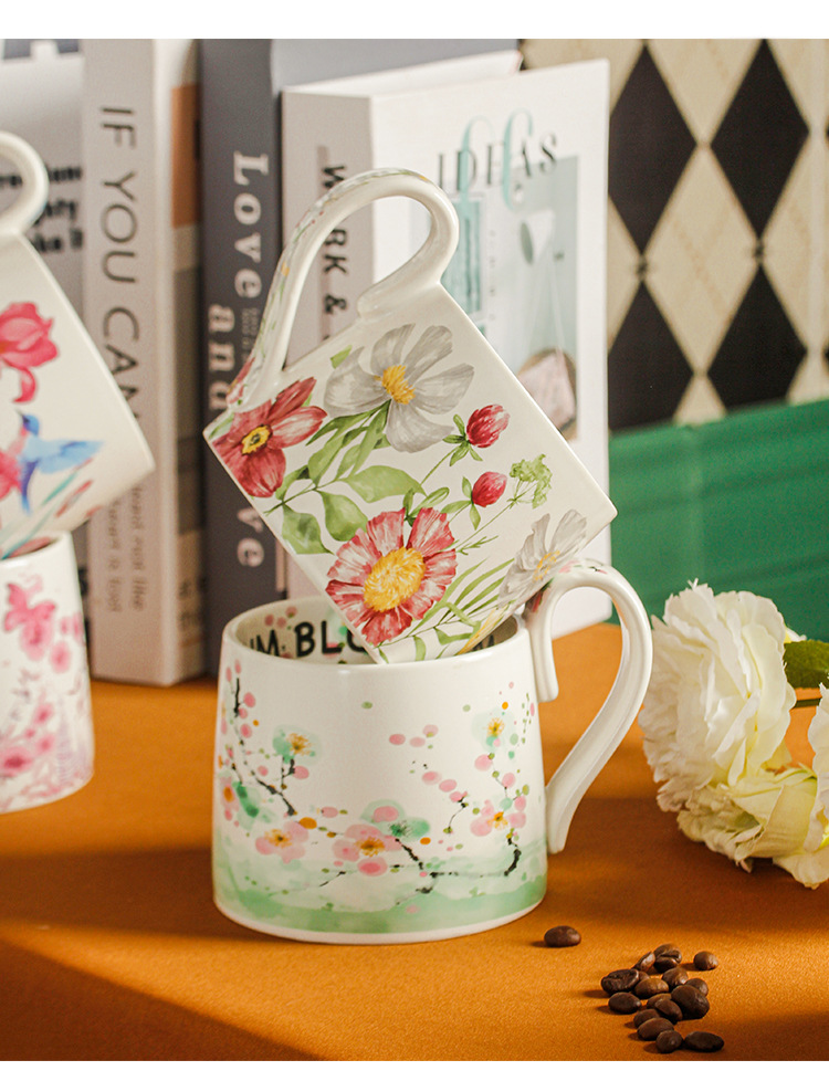| Colores | Taza retro jardín de fantasía,Copa vintage con flores de sol,Taza retro ciruela de pintura al óleo,Taza vintage de flor rosa,Pequeña taza retro de flores amarillas,Taza vintage de campanillas,Vintage taza violeta |