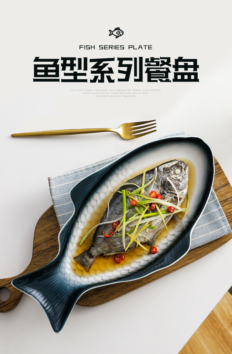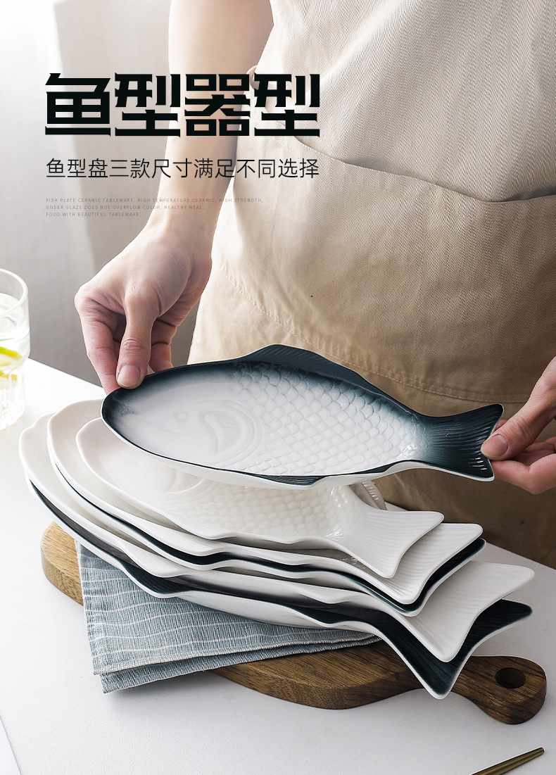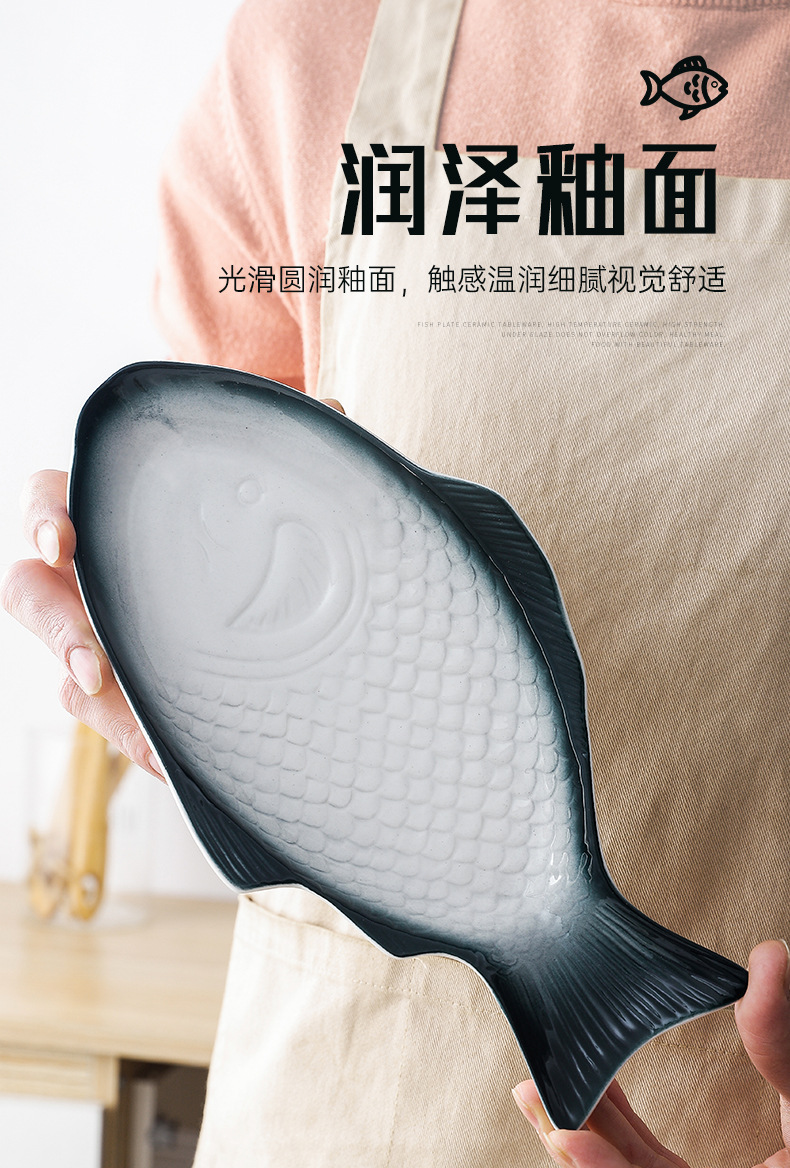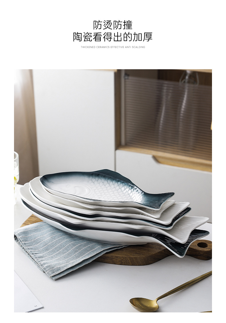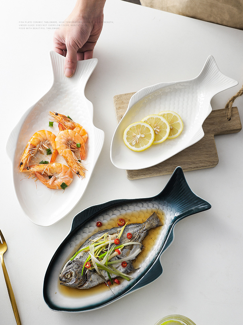 Nórdico personalizado en forma de pez plato de cerámica plato doméstico plato de pescado placa plana de color bajo vidriado ins creativo de gran tamaño pequeño plato de pescado al vapor