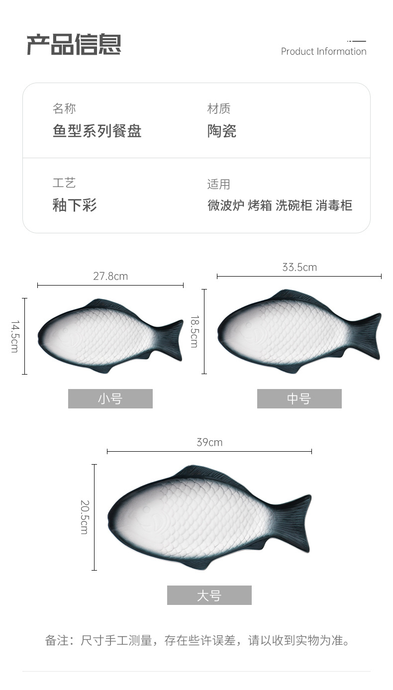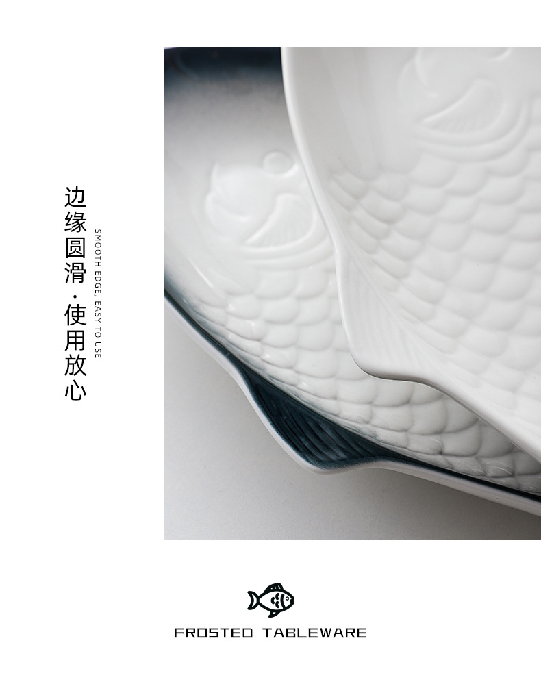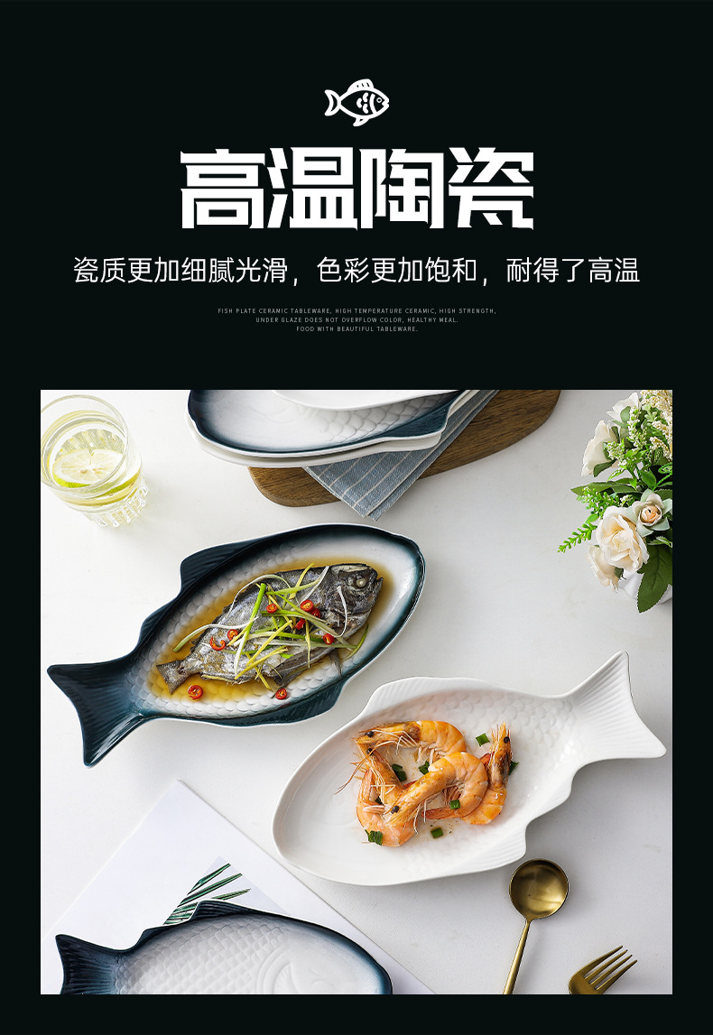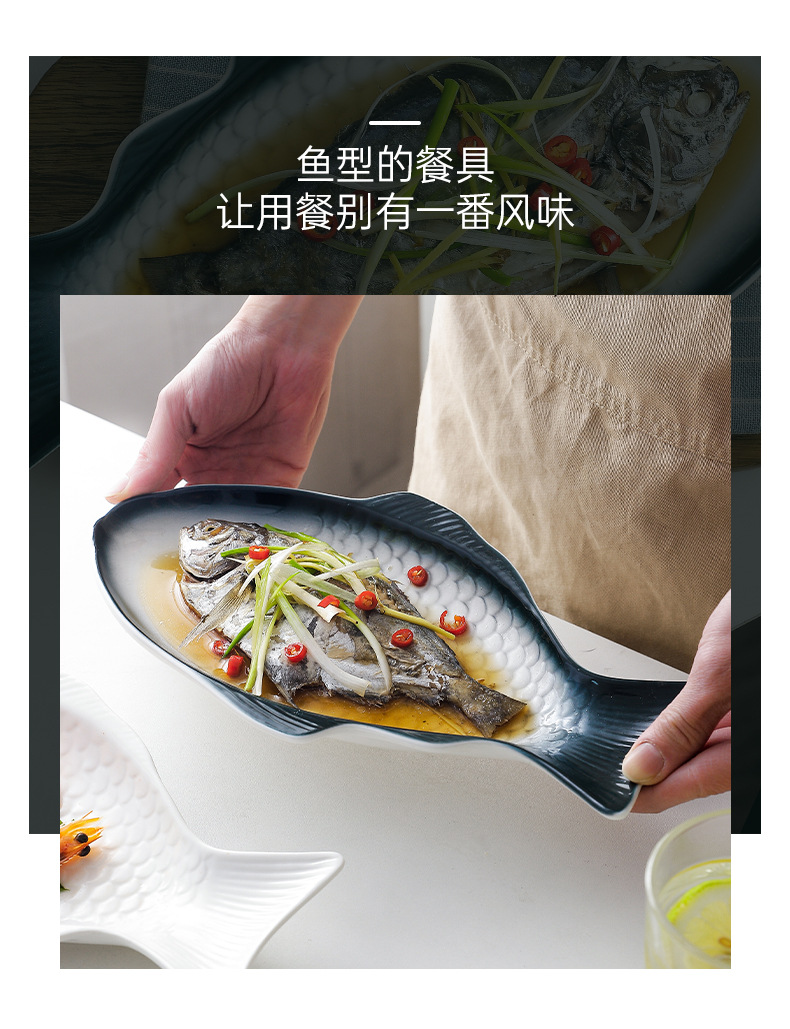 Nórdico personalizado en forma de pez plato de cerámica plato doméstico plato de pescado placa plana de color bajo vidriado ins creativo de gran tamaño pequeño plato de pescado al vapor