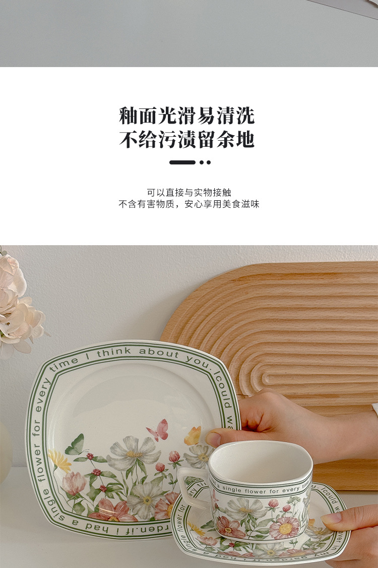 | Color | Traje de taza y plato de flores de Xiangyang en forma cuadrada, bolsa de mano en forma cuadrada en forma de flor de Xiangyang (taza y plato + plato de dim sum cuadrado), plato de pastel de flores de Xiangyang en forma cuadrada (19 cm) |