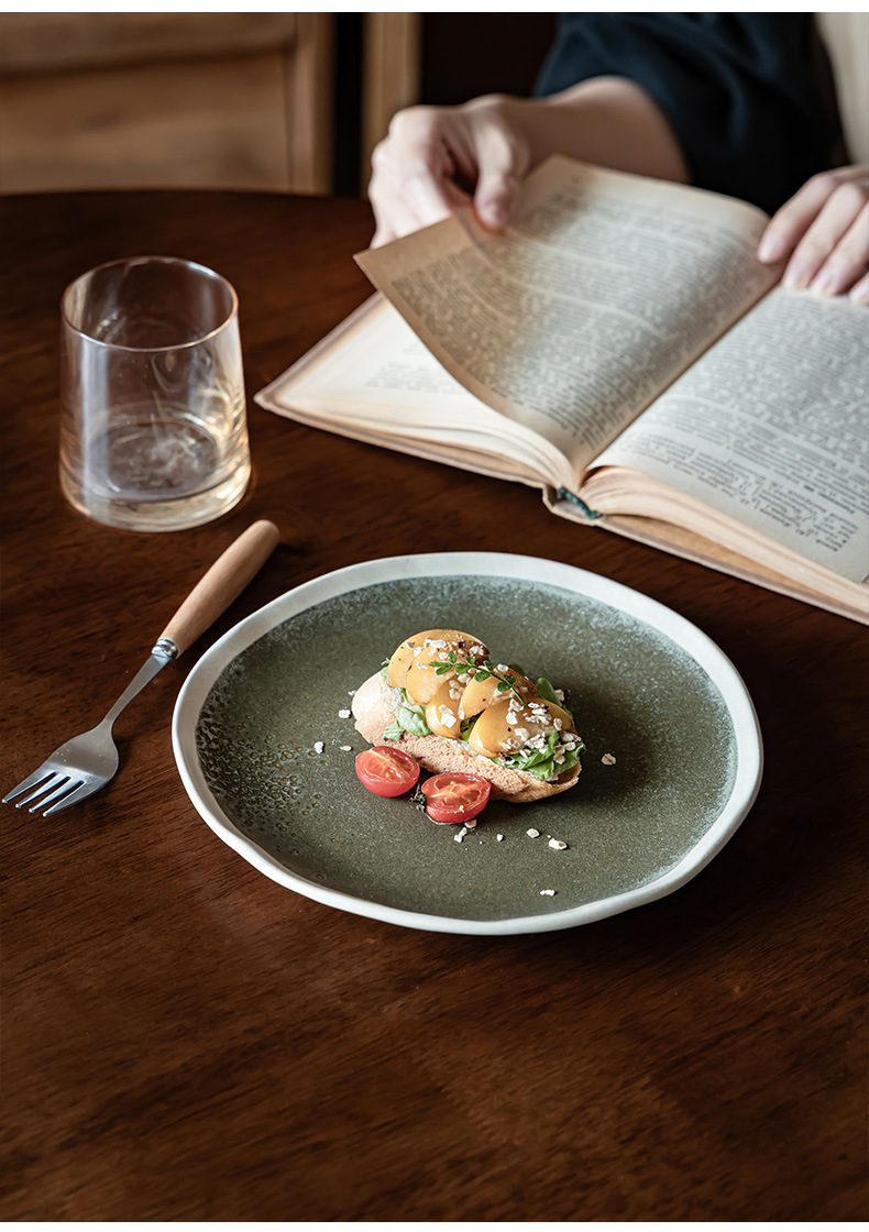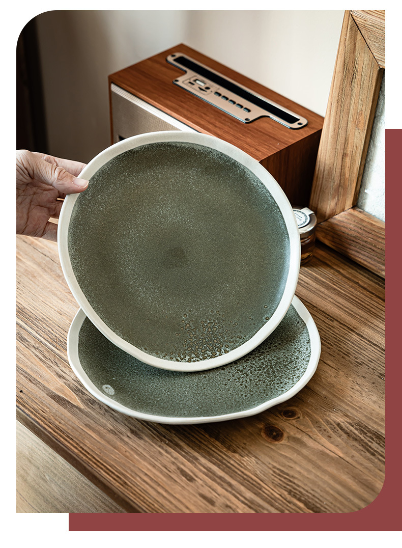 Placa de trazado blanco creativa Placa de filete de cerámica retro Placa doméstica irregular platos de comedor occidentales platos de comedor poco profundos