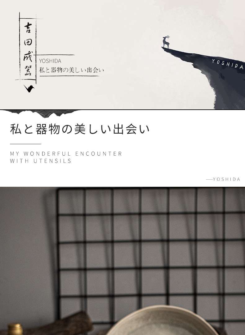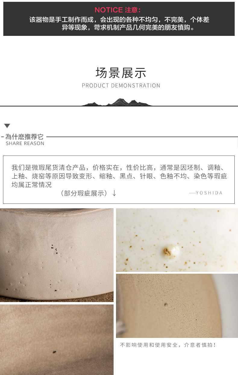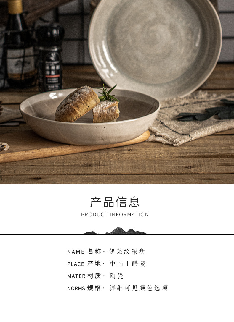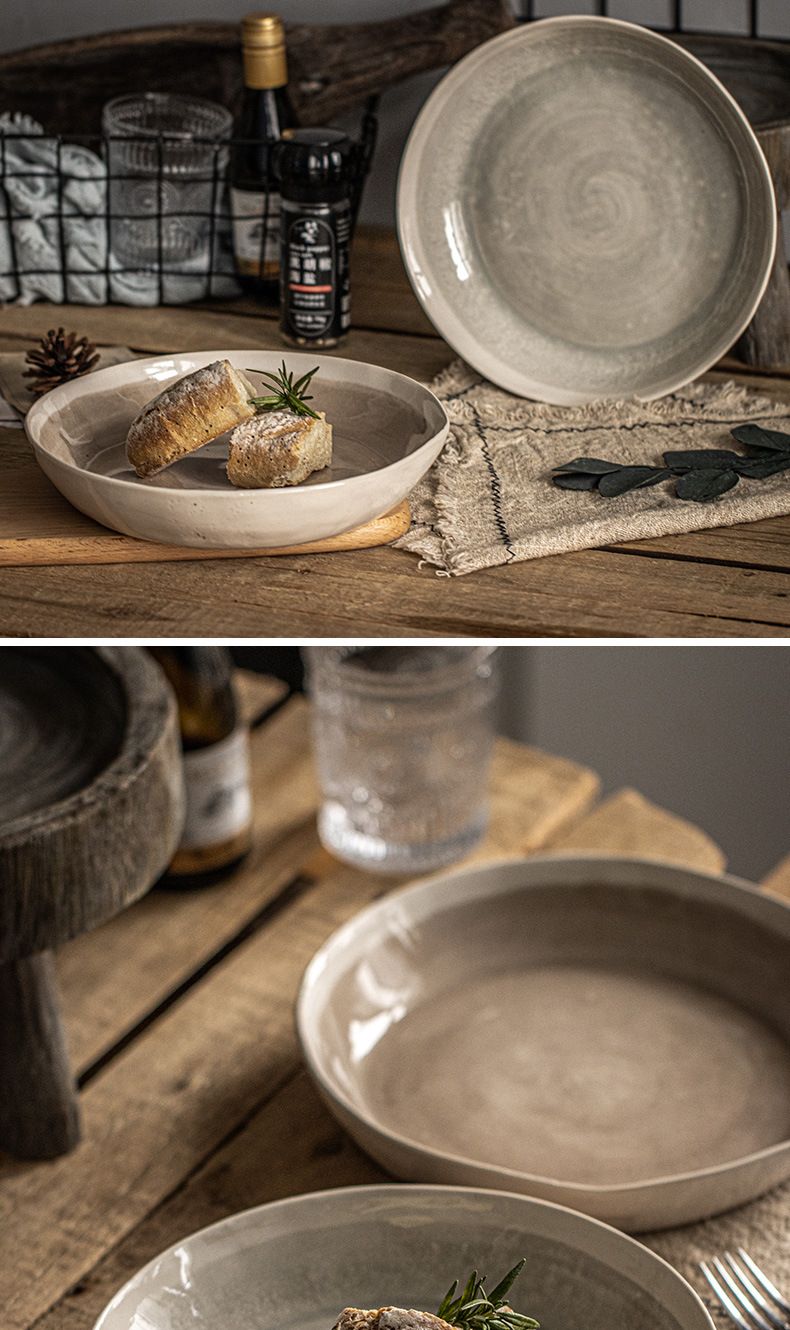 Retro artístico de alto aspecto de cerámica de estilo japonés placa profunda plato de sopa de alto aspecto plato ensalada placa ligeramente defecto