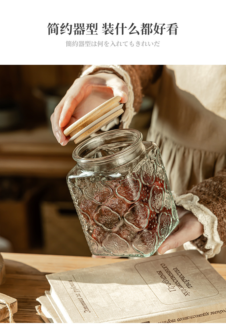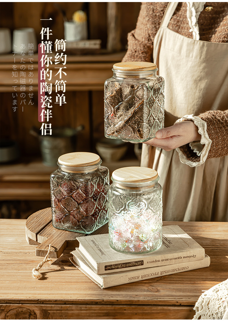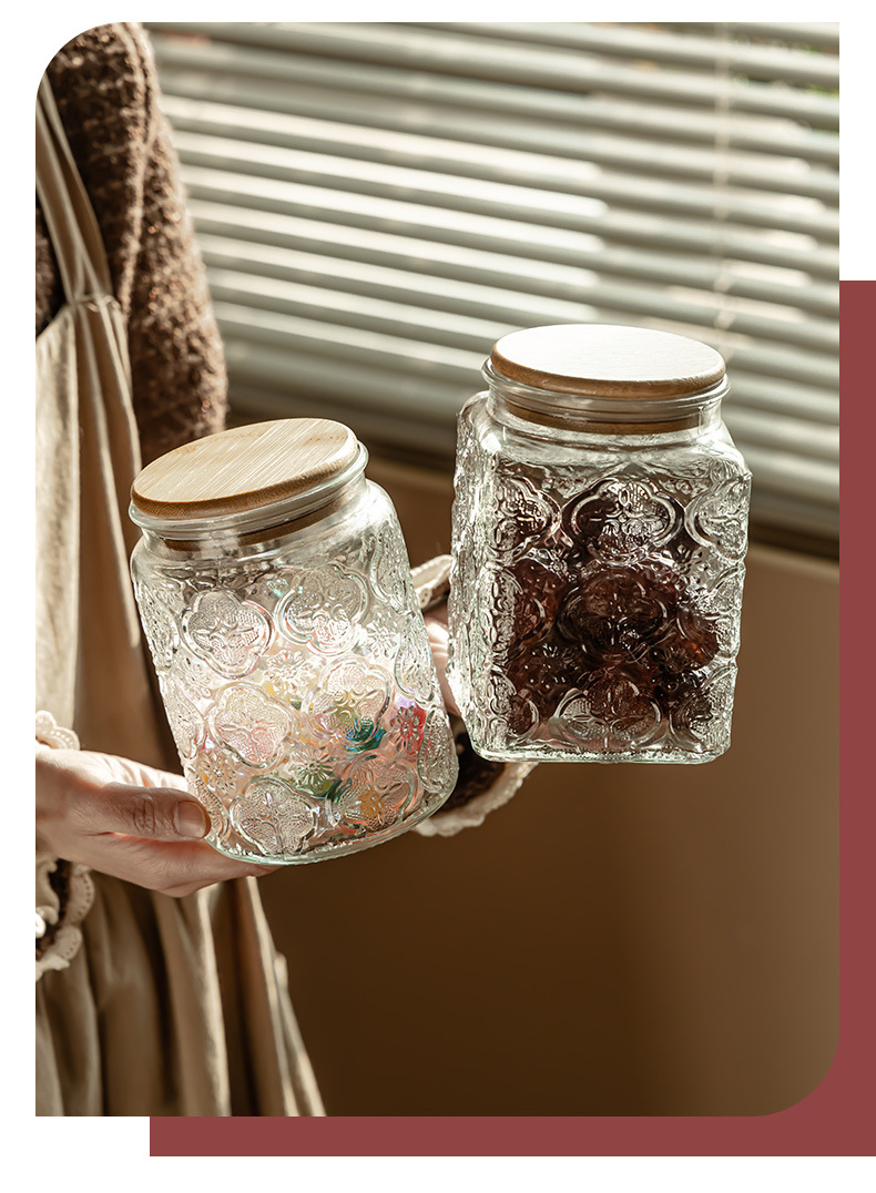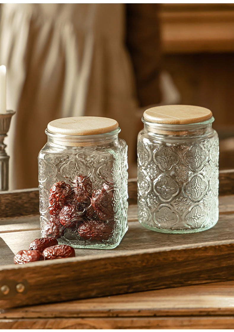 Borosilicato de alta transparente de vidrio tarro de almacenamiento de bambú cubierta de madera granos de cocina té caramelo de almacenamiento sellado tarro