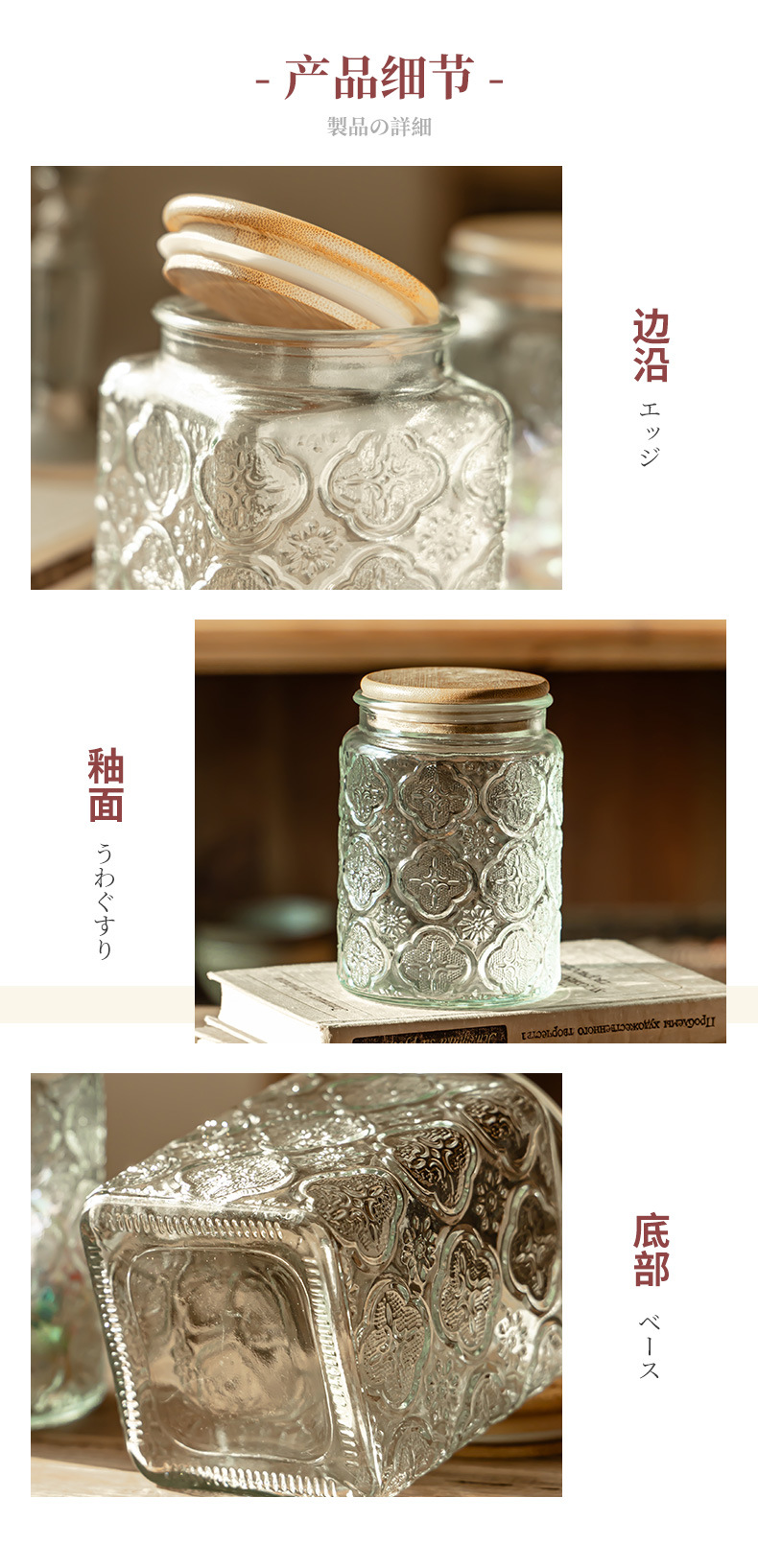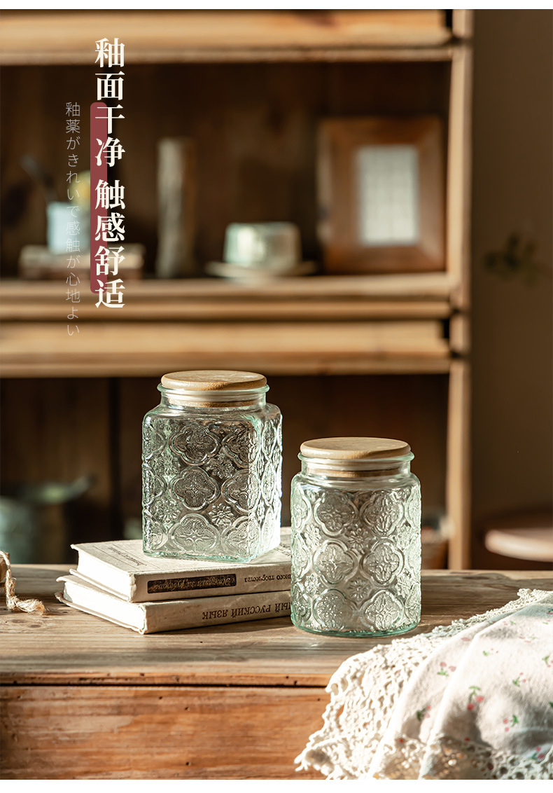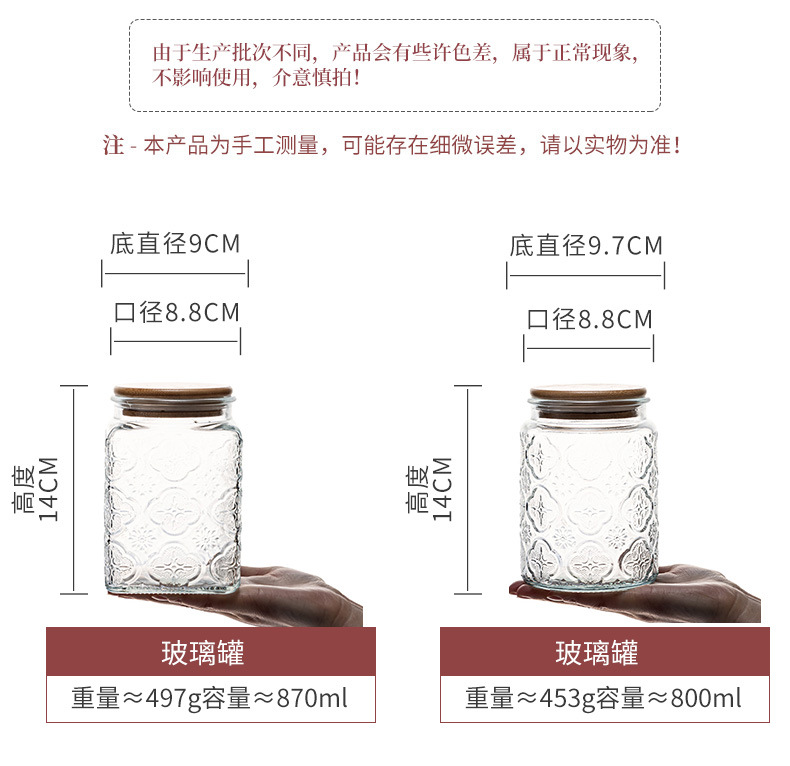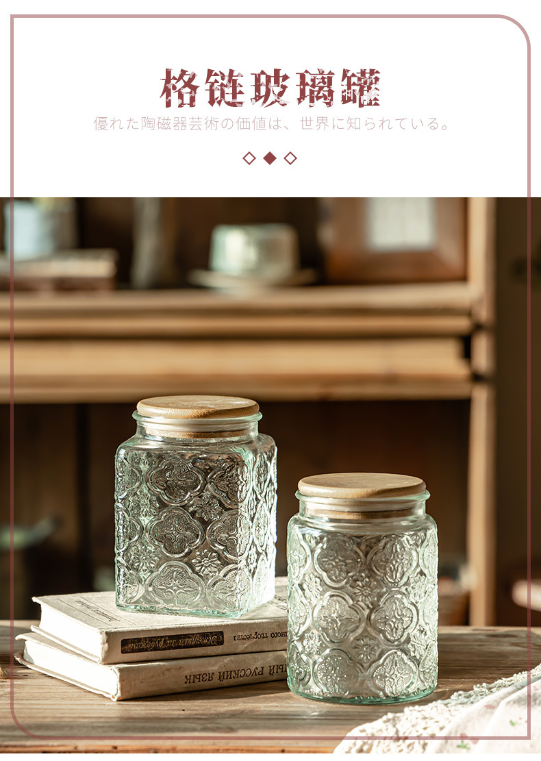 Borosilicato de alta transparente de vidrio tarro de almacenamiento de bambú cubierta de madera granos de cocina té caramelo de almacenamiento sellado tarro