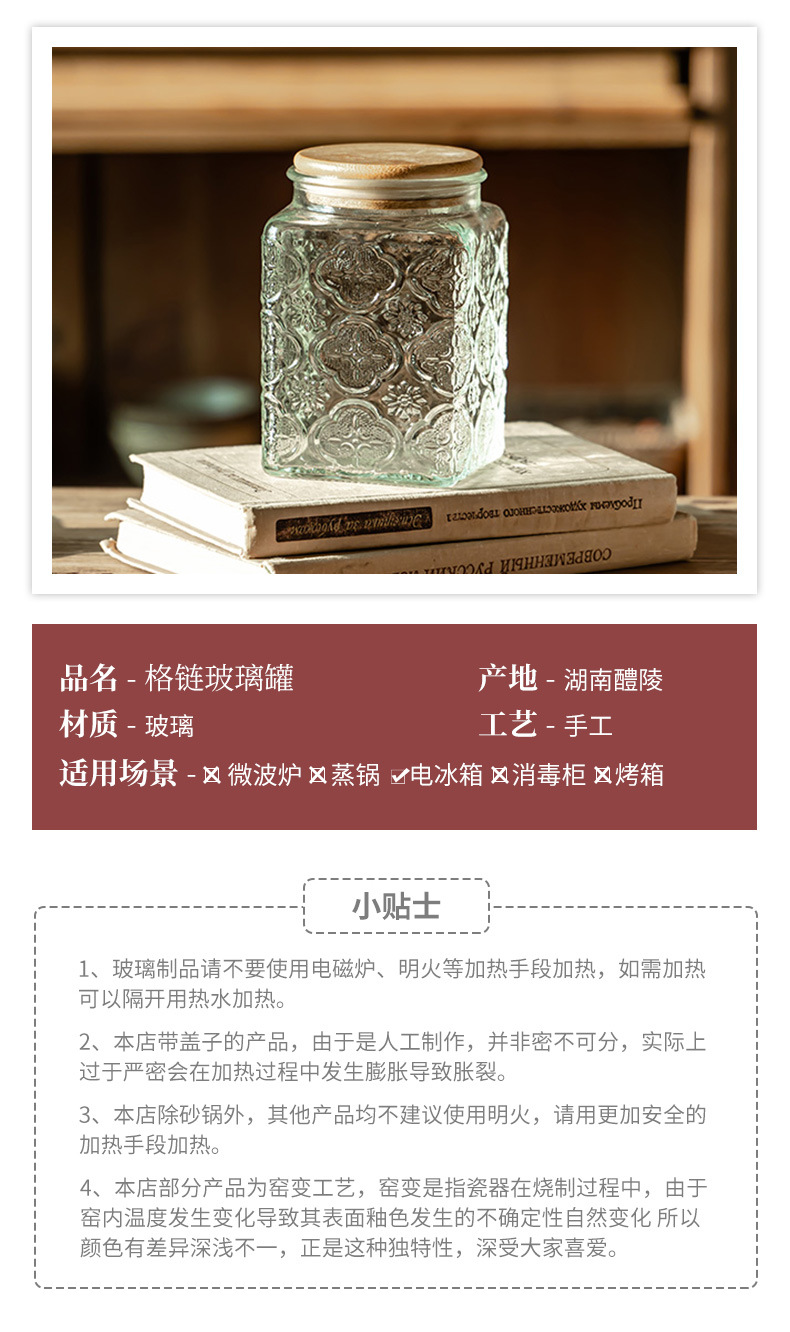 Jarro de vidrio redondo de cadena de rejilla 800ML, jarro de vidrio cuadrado de cadena de rejilla 870ML