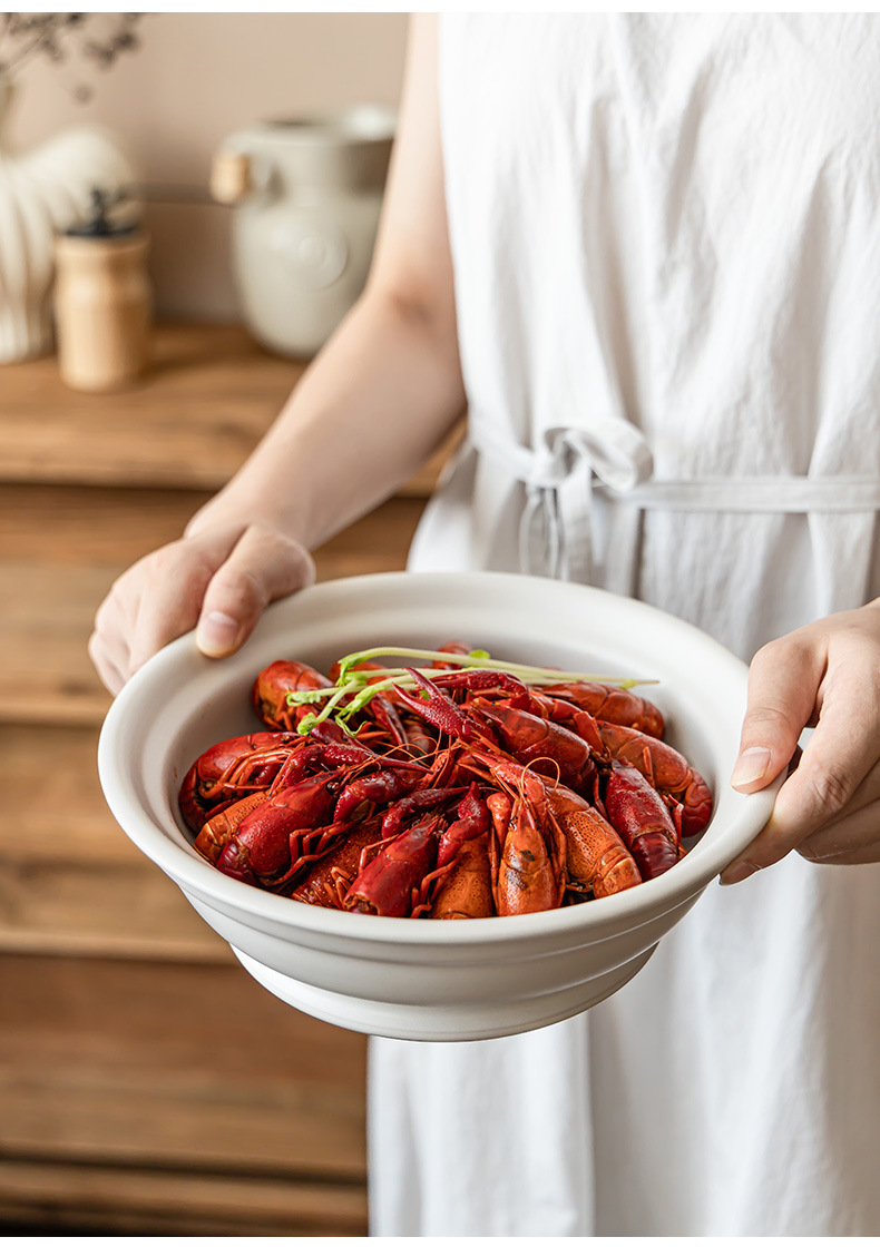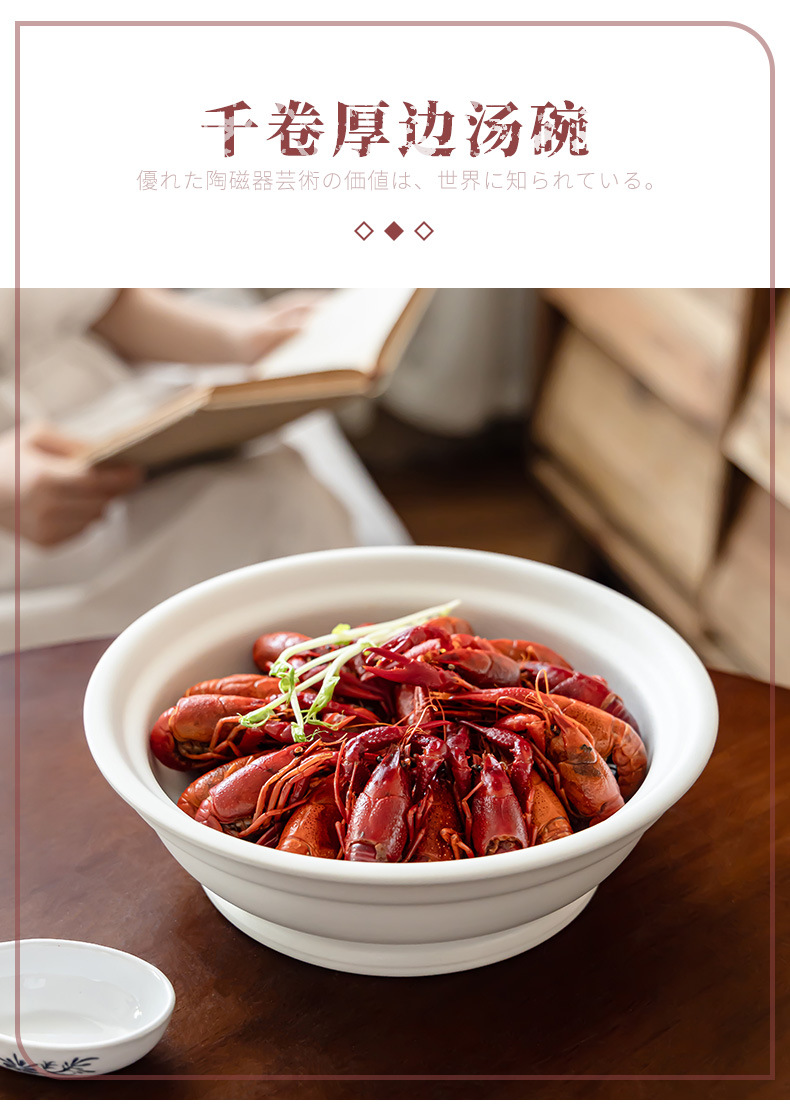 Simple y alto valor de la cara de los platos de cerámica de borde grueso para el hogar, platos de sopa de gran tamaño creativos, platos de sopa, platos de langosta