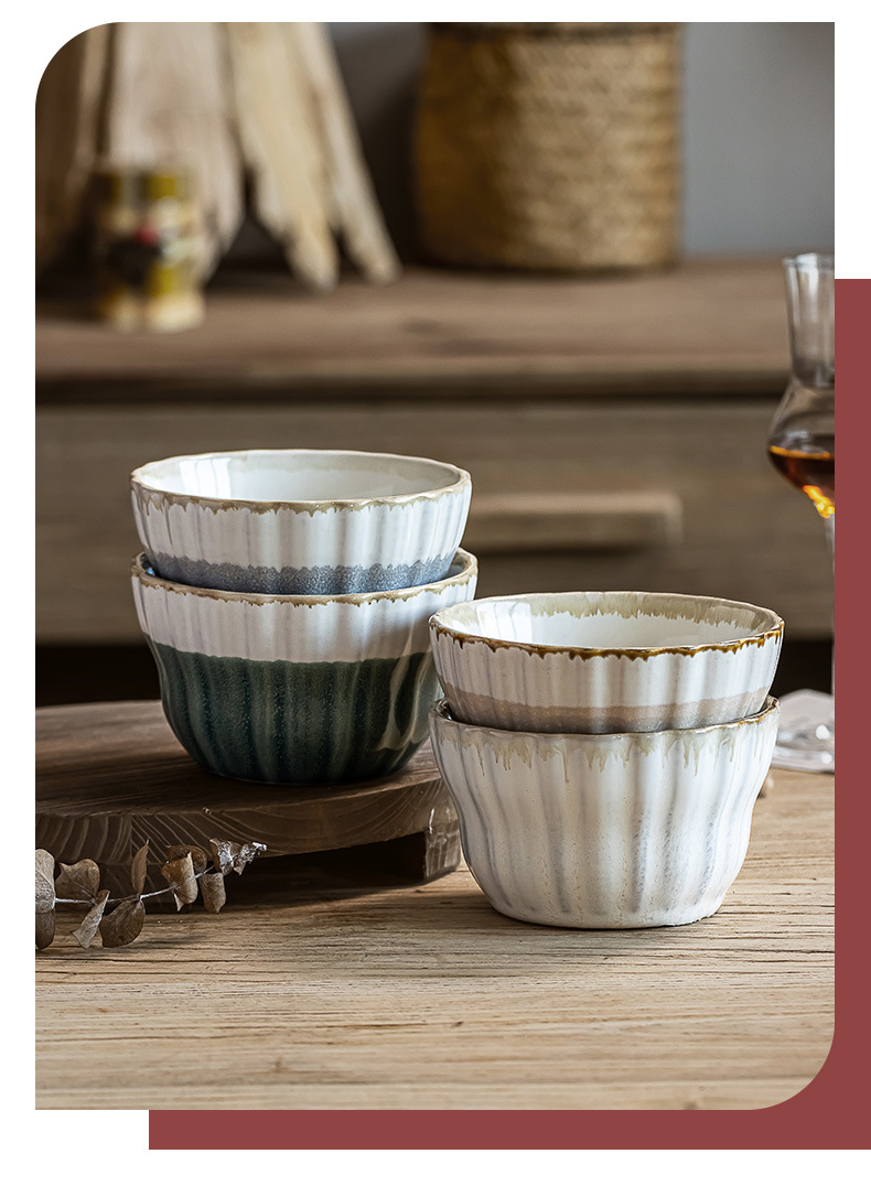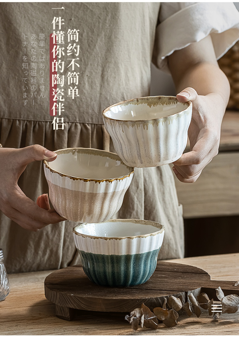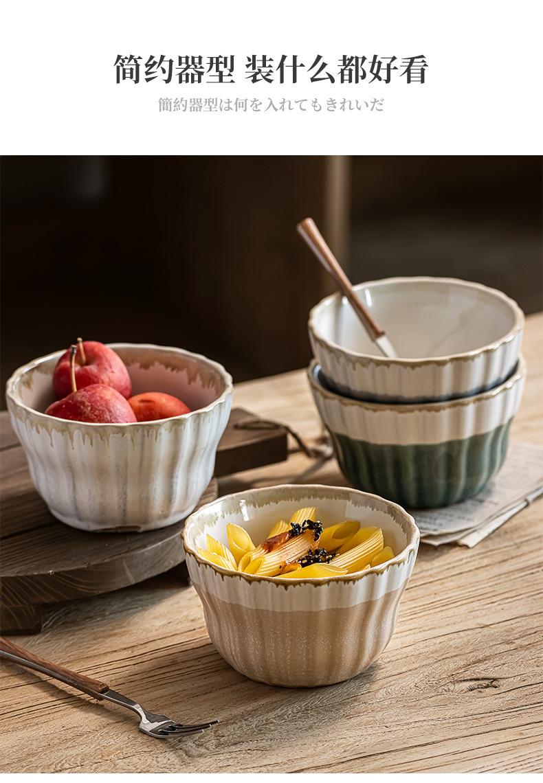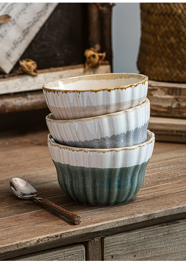 Tazón de arroz multicolor vidriado retro Tazón de sopa dulce para el hogar Tazón de avena Postre de cerámica Tazón pequeño Cuenco de arroz seco práctico