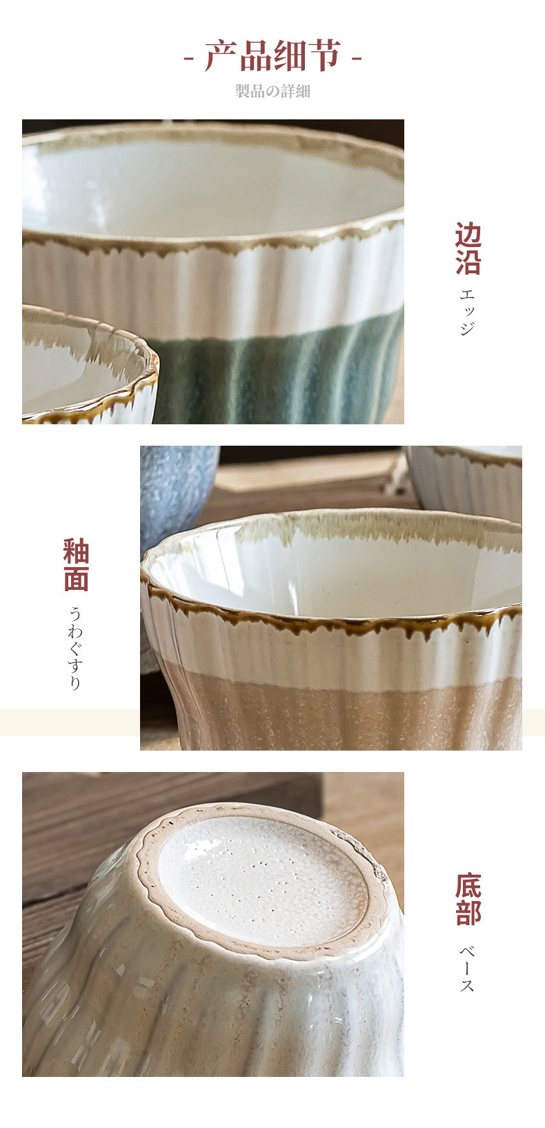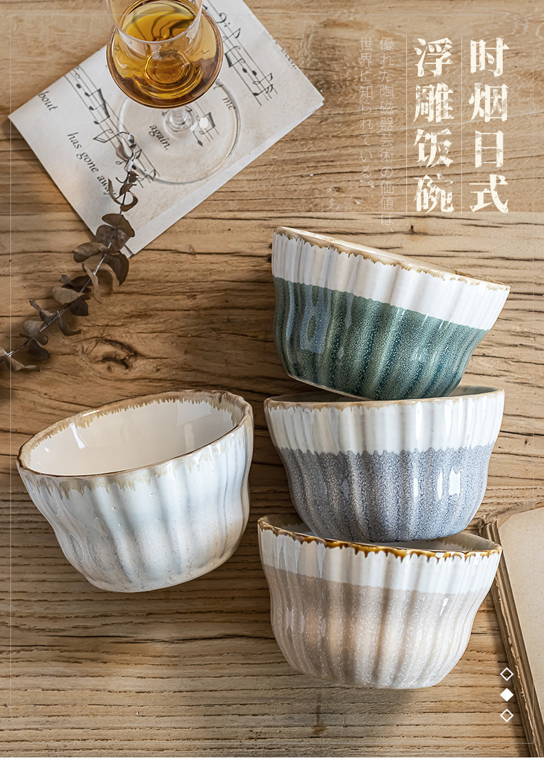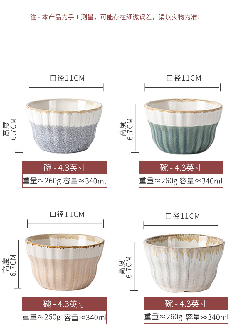 Tazón de arroz multicolor vidriado retro Tazón de sopa dulce para el hogar Tazón de avena Postre de cerámica Tazón pequeño Cuenco de arroz seco práctico