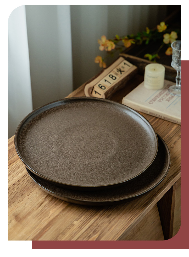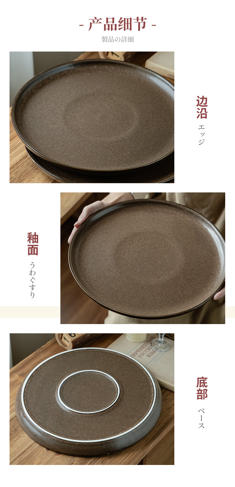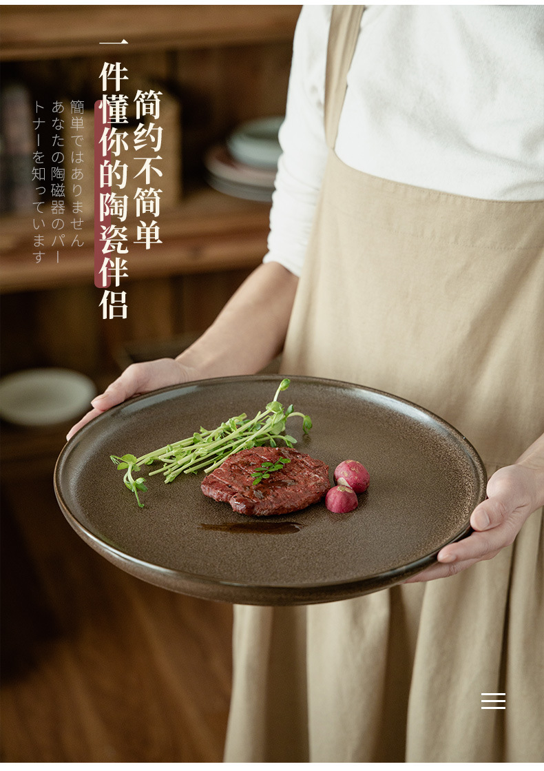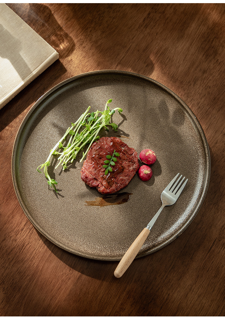 Venta al por mayor vajilla japonesa hecha a mano hogar placa de cerámica placa plana plato de postre plato vintage Placa de carne placa de cerámica