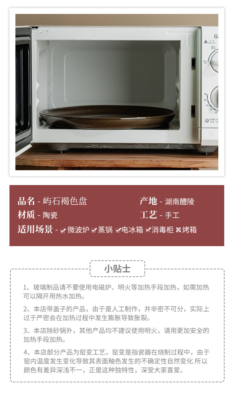 Yue Stone - Gran Plate Brown 12.4 pulgadas (defectos ligeros)