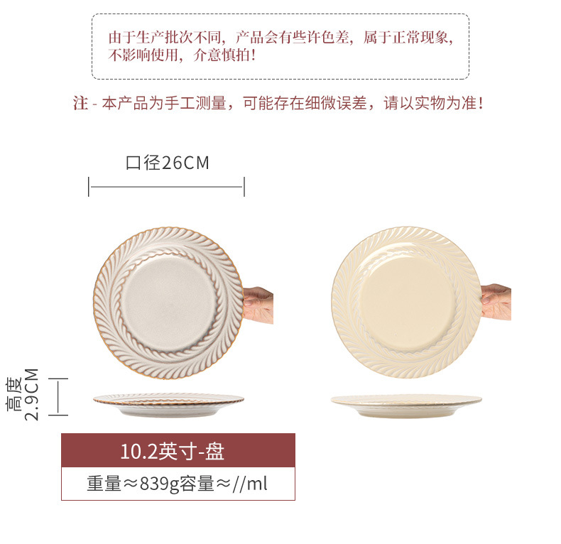| Color | Espada de trigo - relieve gran bandeja marrón 10.2 pulgadas (defectos ligeros), Espada de trigo - relieve gran bandeja amarillo 10.2 pulgadas (defectos ligeros) |