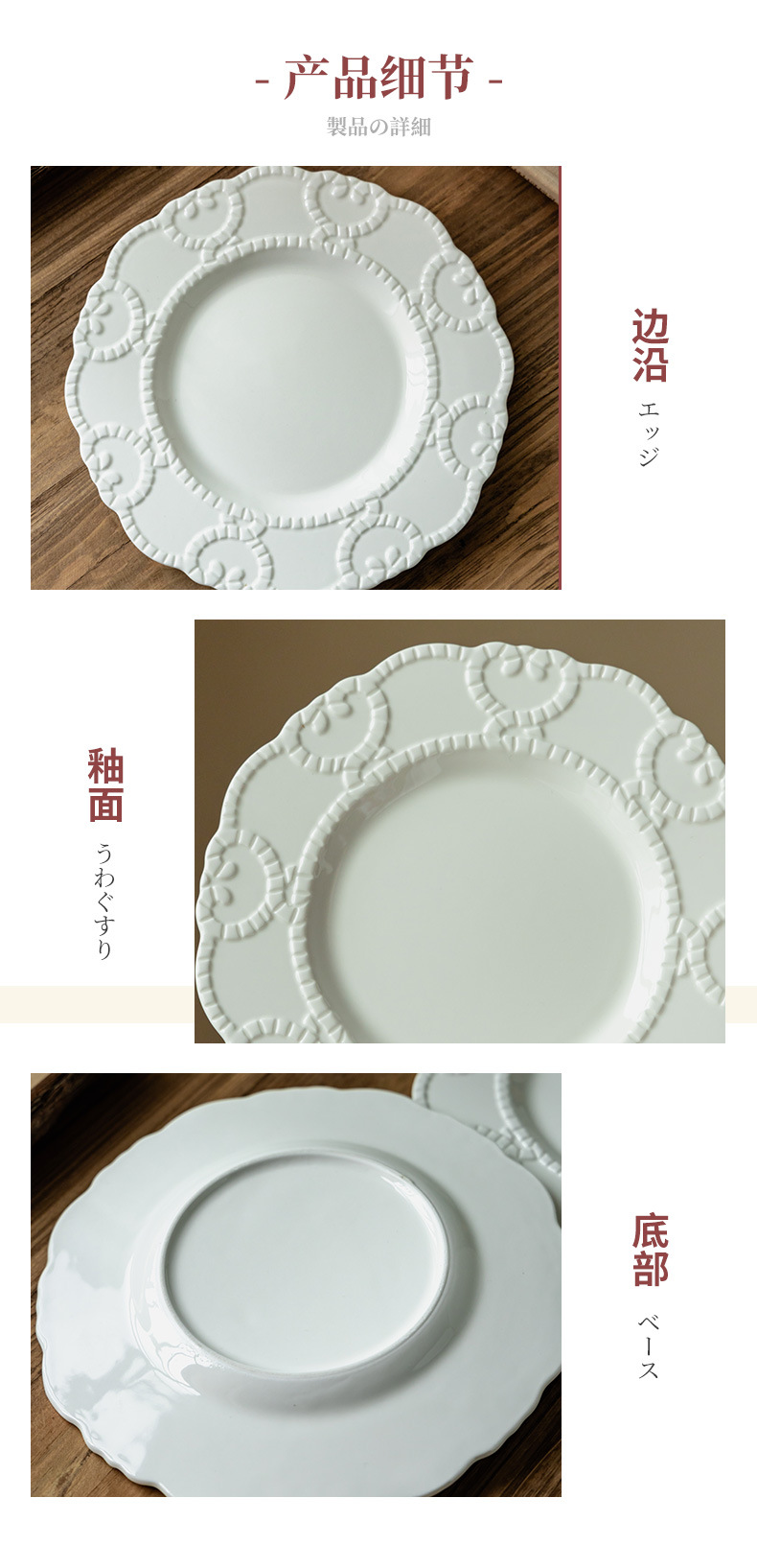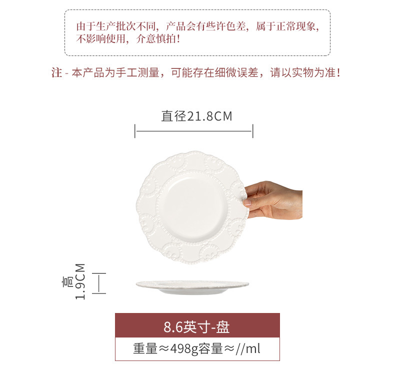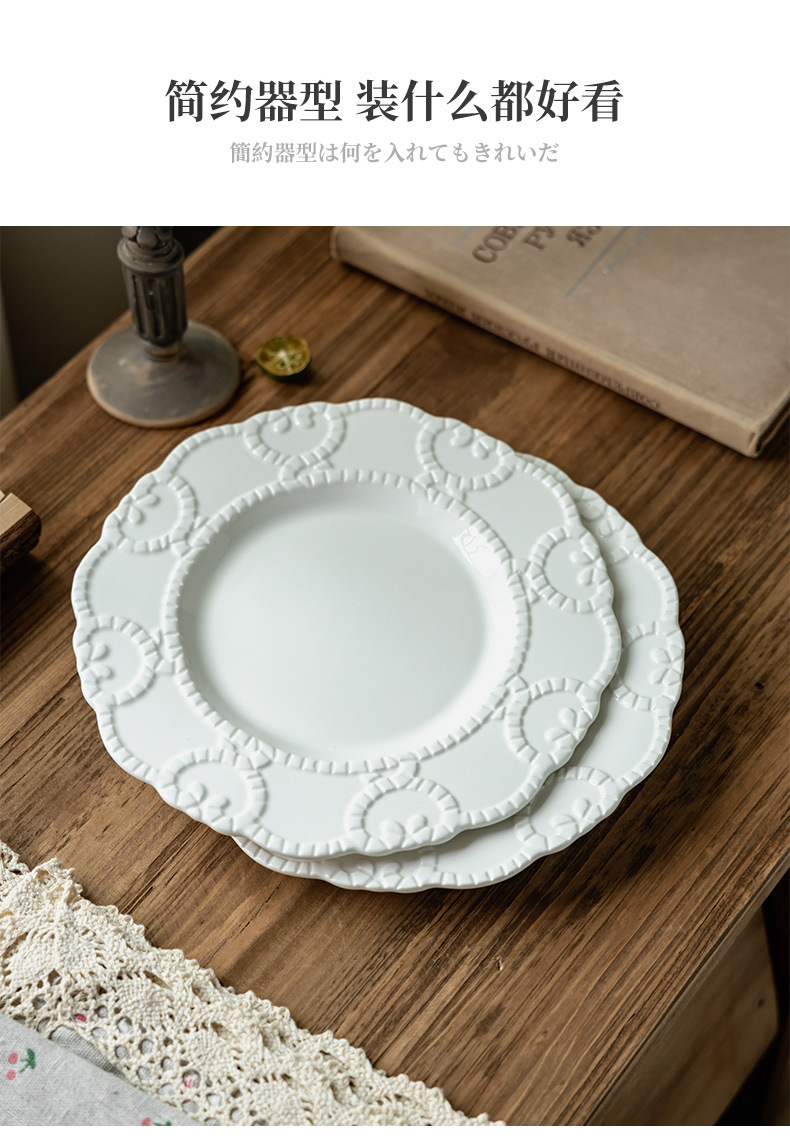 Plato de cerámica en relieve francés, plato de encaje, plato de postres de restaurante de alto nivel, plato creativo para el hogar, plato diario