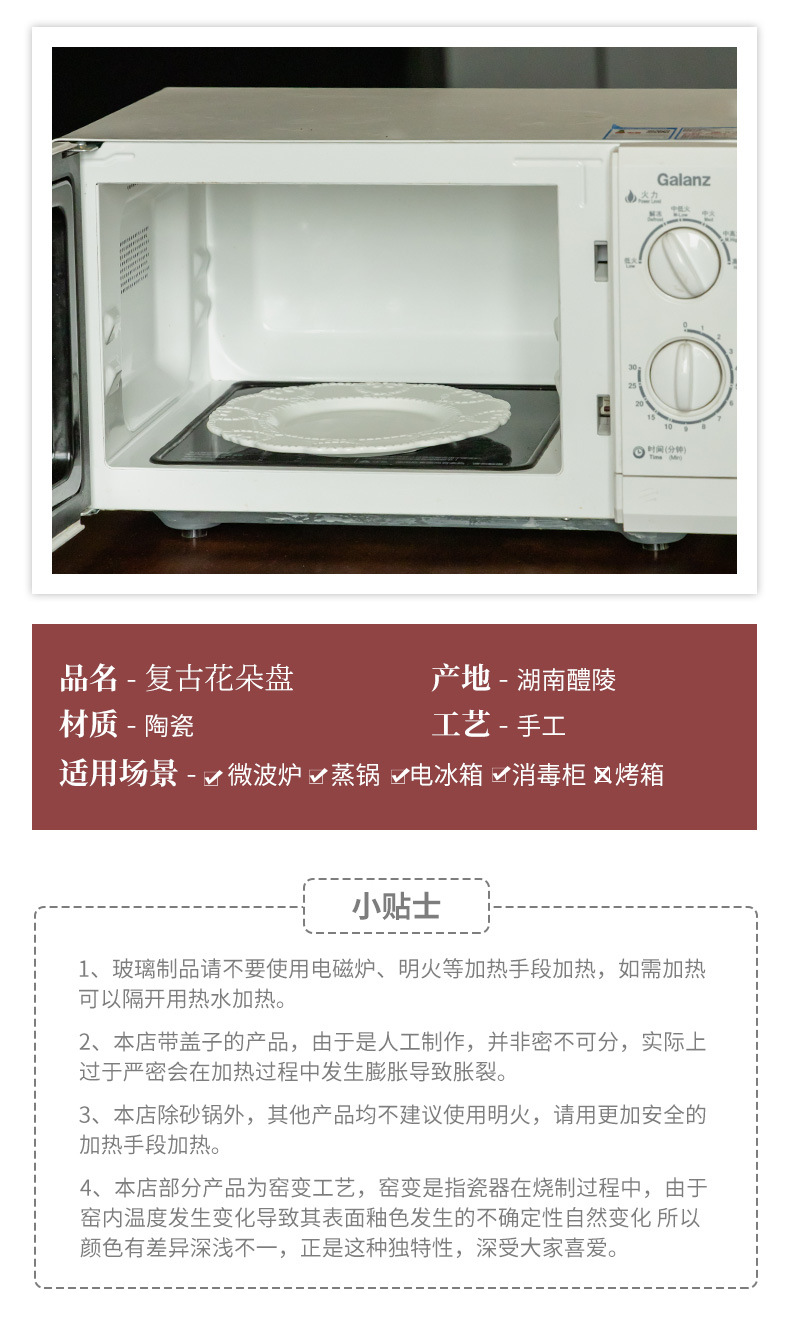 10.5-inch creativo vintage encaje en forma de plato de cerámica plato de cena Hotel hogar occidental plato de carne plato de pescado plato de fruta
