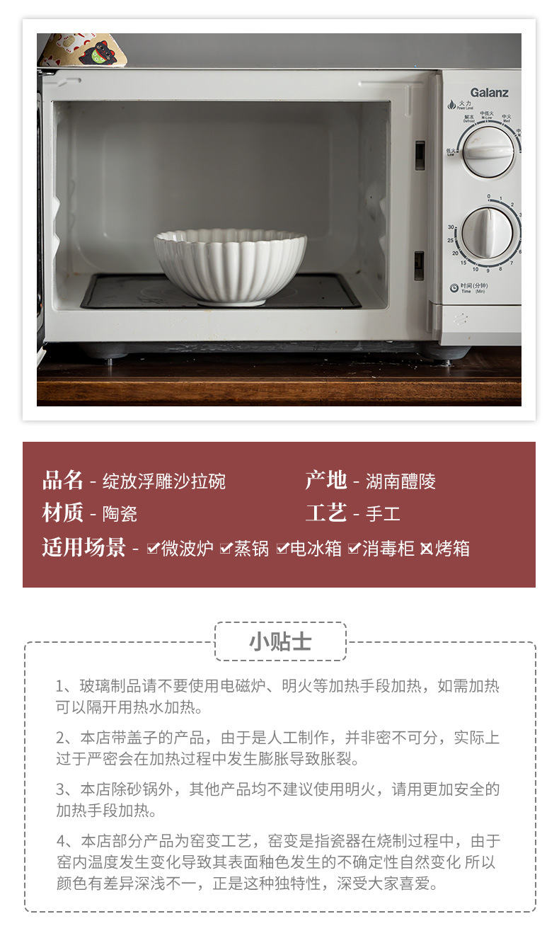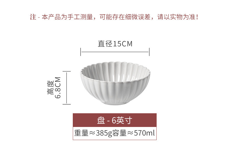 | Color | Ruoxin - tazón de ensalada de 6 pulgadas blancas (micro - defectos), floreciendo - tazón de arroz de 4,6 pulgadas (micro - defectos) |