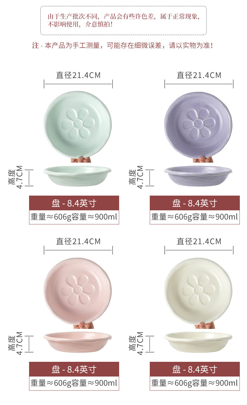 | Color | Luoluo-plato hondo leche blanca 8,4 pulgadas,Luoluo-plato hondo verde 8,4 pulgadas,Deep Dish púrpura 8,4 pulgadas,Luo-Polvo de placa profunda 8,4 pulgadas |